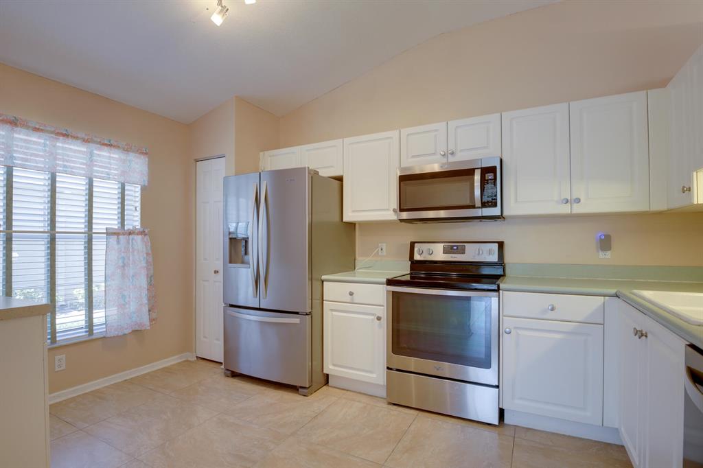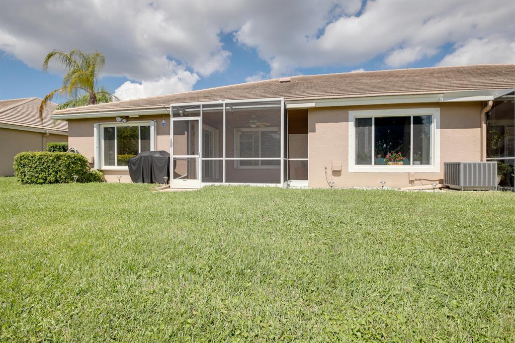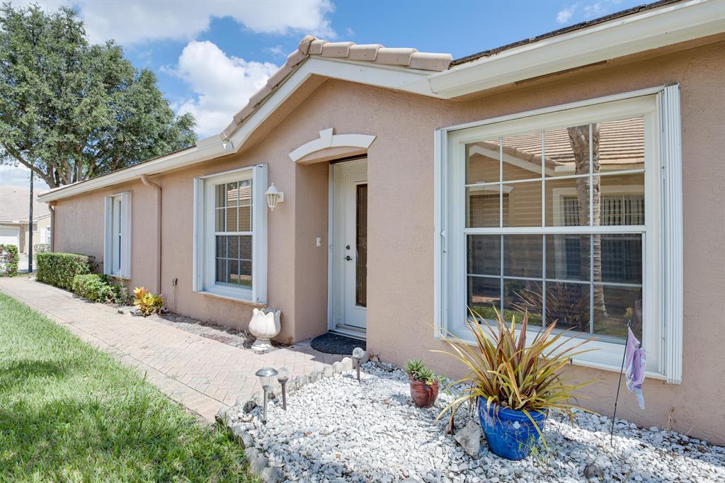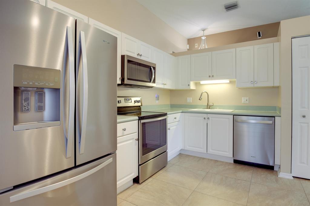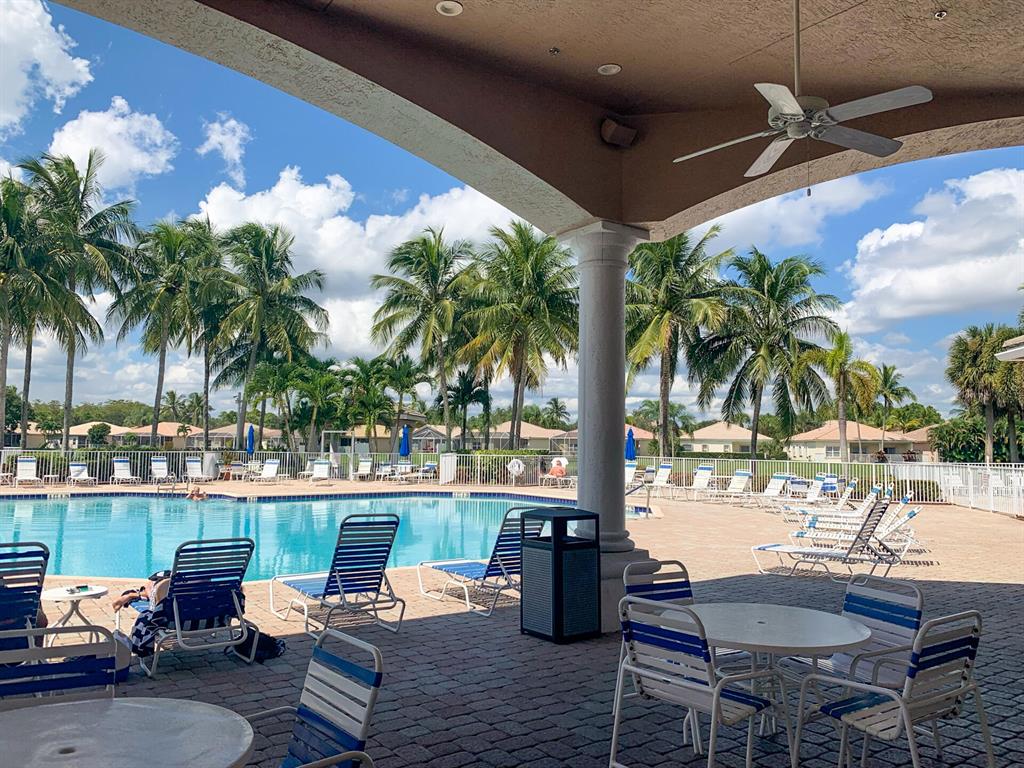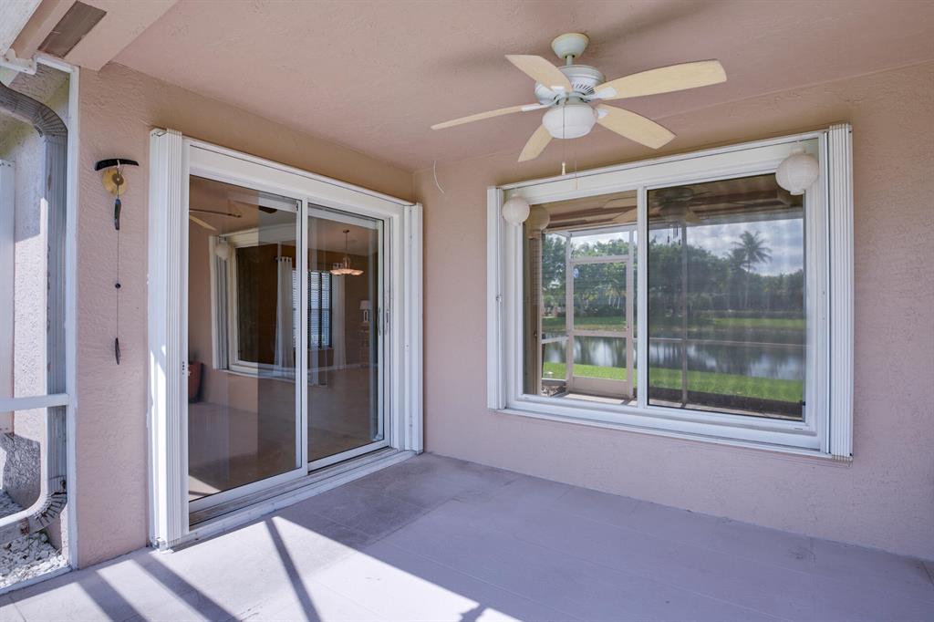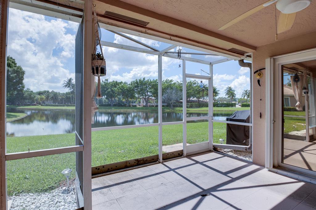 LONG LAKE VIEW 3 BEDROOM 2 BATH, 2 CAR GARAGE VILLA. Interior boasts 24 x 24 tile in the living areas, knockdown/volume ceilings, bedrooms have new laminate floors. The Master suite has his/hers closets ,double sinks, walk in shower with a shower seat and linen closet. Bathroom 2 has a walk in spa tub/shower. This unit has a 2020 A/C, 2018 stainless appliances including the Washer & Dryer. Surround sound in great room & Master. All this on a corner lot, with accordion shutters & an extended screened patio 2018. The garage has an outside key pad and a pull down screen. Community of Andros Isles is close to shopping , turnpike and 95. Lots of activities such as community pool, fitness room, playground. tennis and more. NO RENTAL RESTRICTIONS**MONTHLY DUES -SEE MORE IN PUBLIC REMARKS