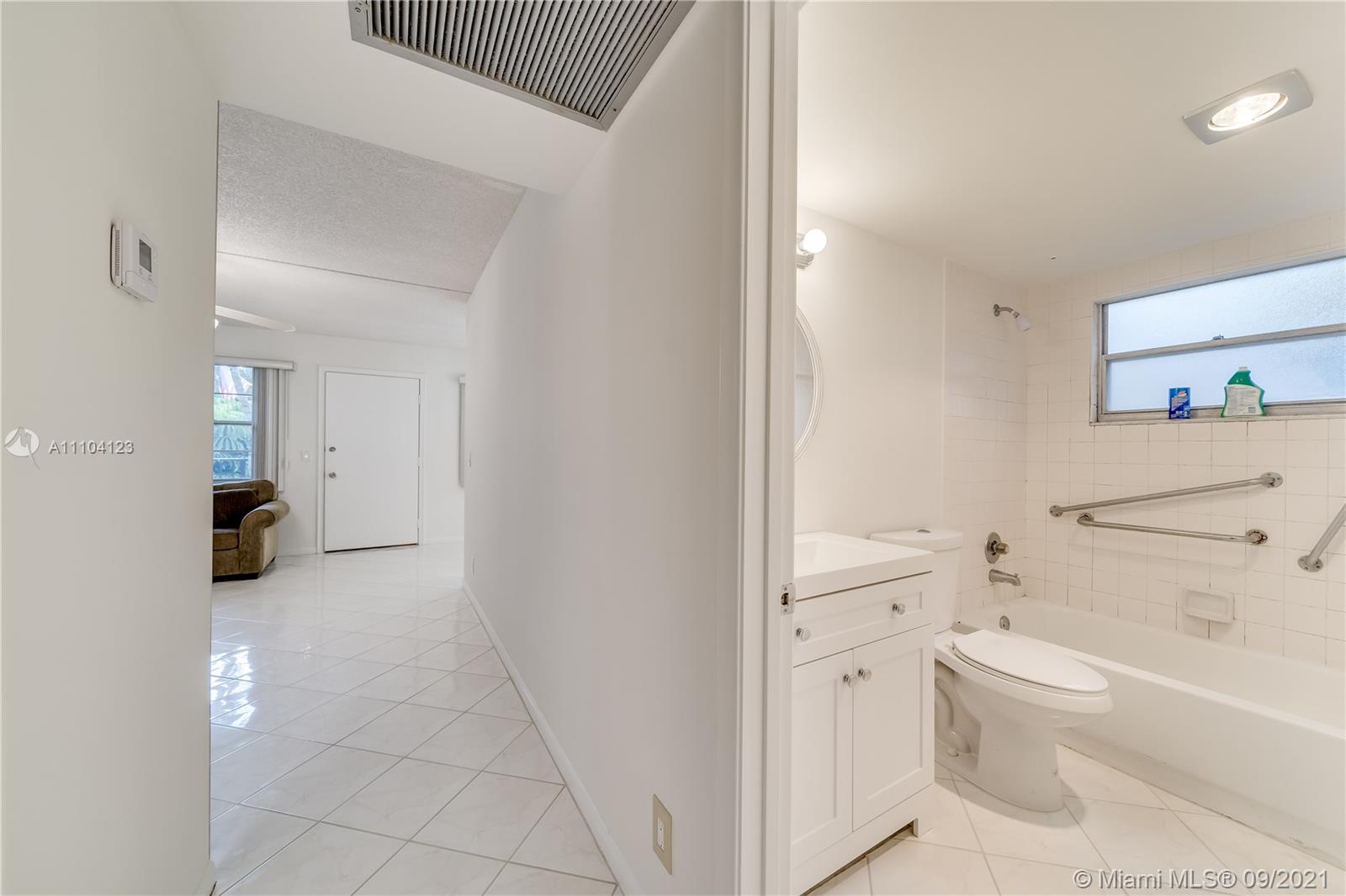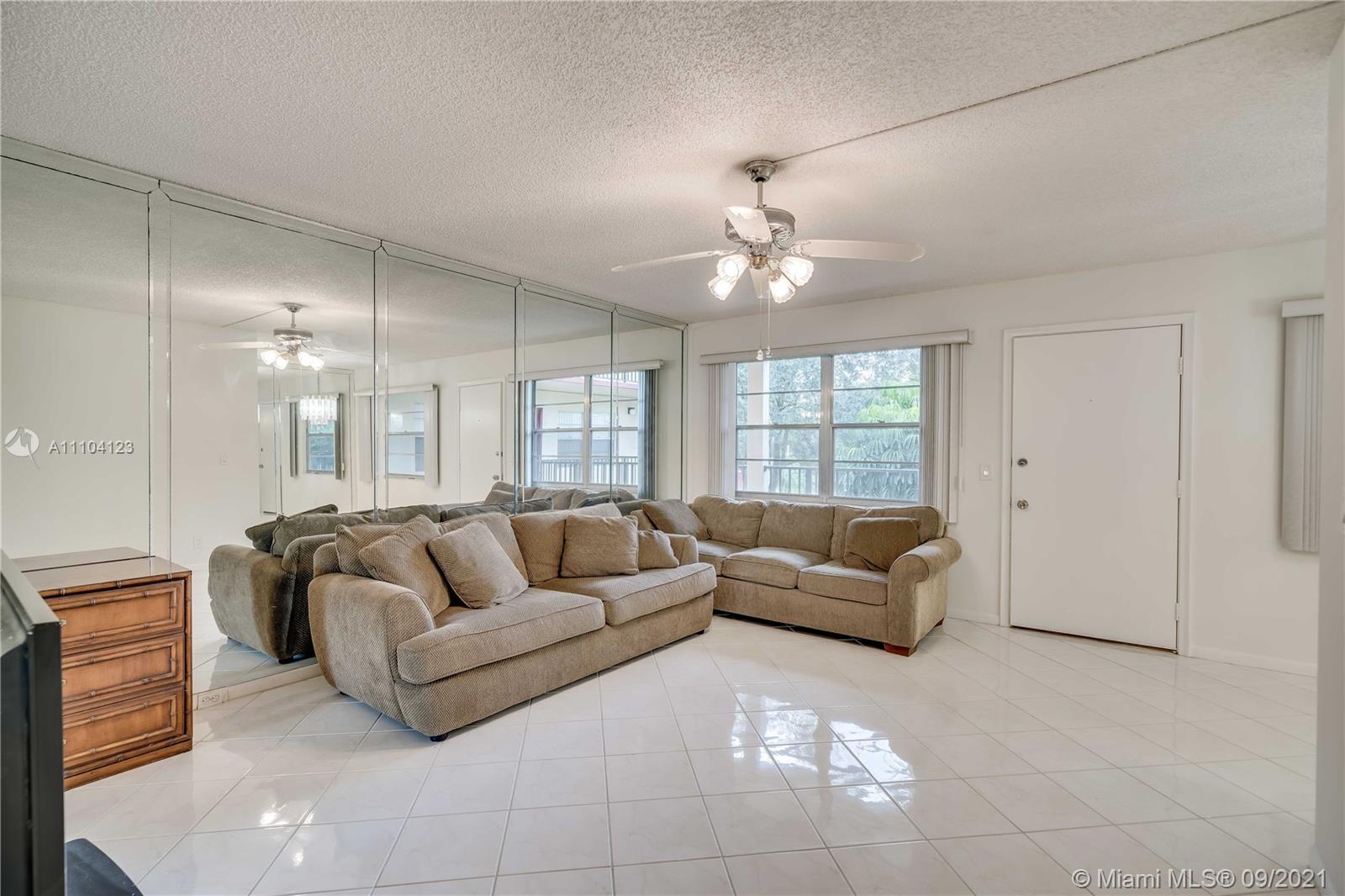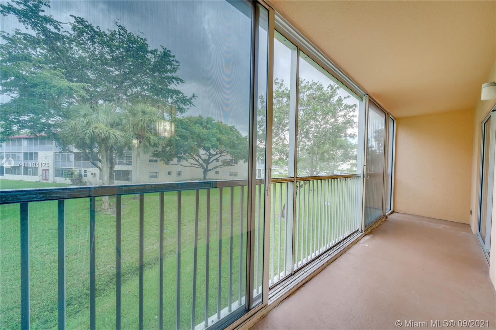 Beautiful, all tiled 2 bedroom, 1.5 bathroom on second floor. Main bathroom has been renovated and the entire condo is freshly painted. Seller will transfer contract with Total Appliance. Balcony is fully closed-in with glass doors. Building has elevator and a laundry room on floor. Cable, water, and trash included. Resort style amenities include indoor/outdoor pools, tennis, 2 fitness centers with free classes , including Zumba, yoga, and cardio/strength training, sauna, billiards, clubhouse, courtesy transportation, movie theatre, restaurant, and golf course.
