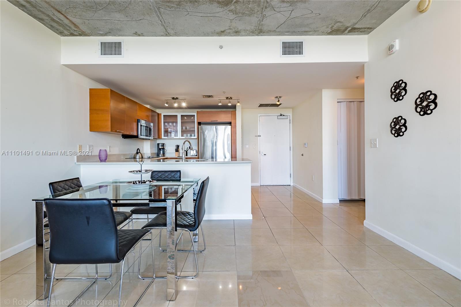 Excellent 1 bedroom/1 bathroom apartment fully furnished. Porcelain tile throughout, kitchen with Italian cabinetry and quartz counter top, washer & dryer. Midblock amenities are on the 5th floor, features swimming pool, outdoor barbecue, fitness center. Amazing location! located in the heart of Midtown Miami and walking distance to shopping, restaurants and park. Low maintenance fee, short term lease allowed.