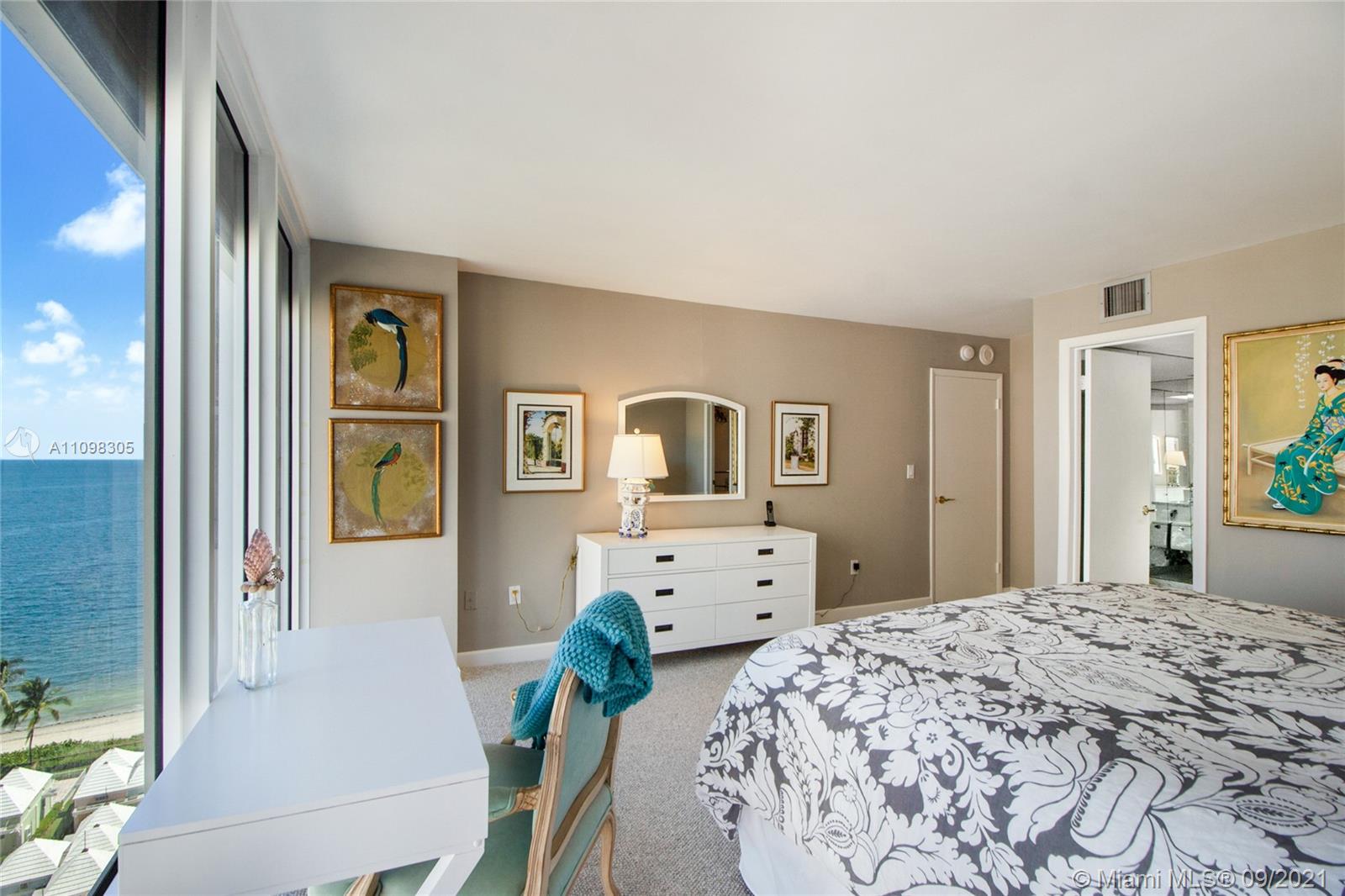 Coveted and rarely available "H" Line in Casa Del Mar! This spacious corner unit features the most spectacular and unobstructed views of the Atlantic Ocean, Downtown Miami, and Key Biscayne beach. Large balconies allow you to start your day with awakening sunrises and finish with breathtaking sunsets. This 3/3 unit offers plenty of room to live with ample space that makes it feel like a true home. Unit has Impact windows and sliding doors, laundry area with trash chute, and separate storage closet in exterior hall. Enjoy exclusive elevator access to your private lobby shared with only one other unit. Well established and highly sought after Key Biscayne building with direct beach access, pool, tennis courts, exercise room, children playground, party room, guard gated entry. Must see!