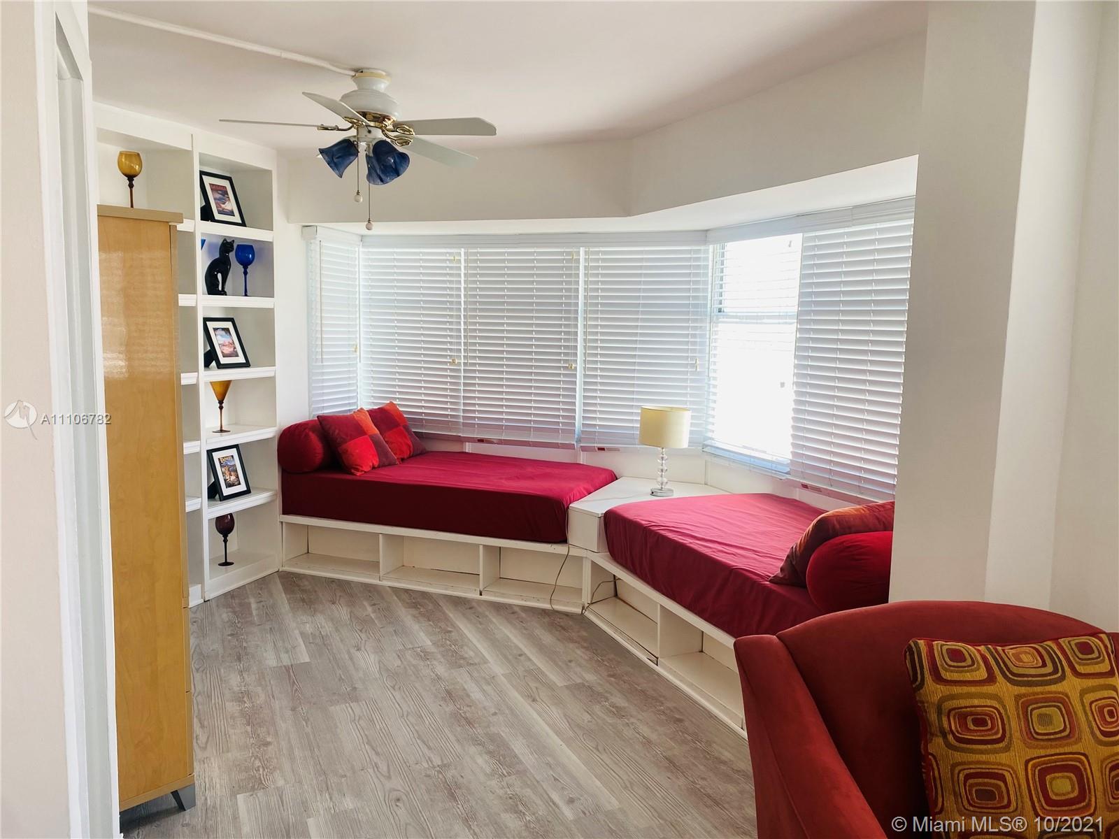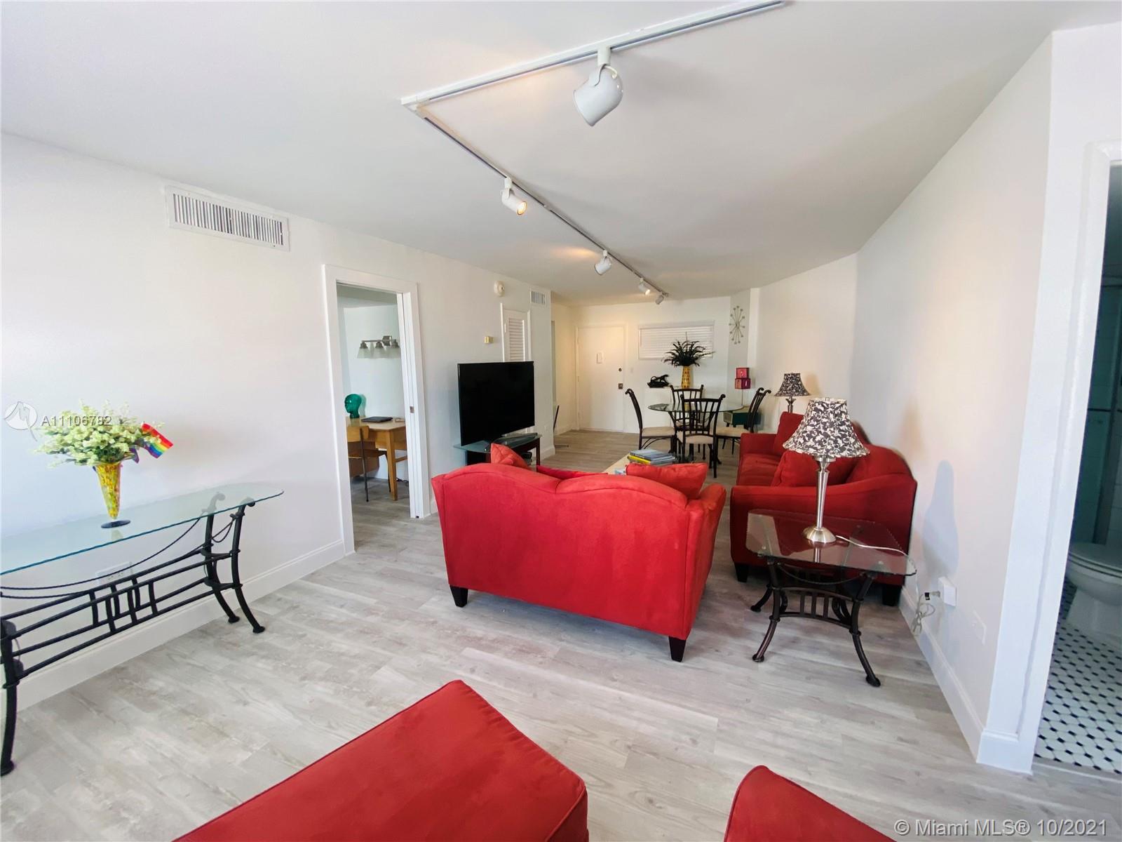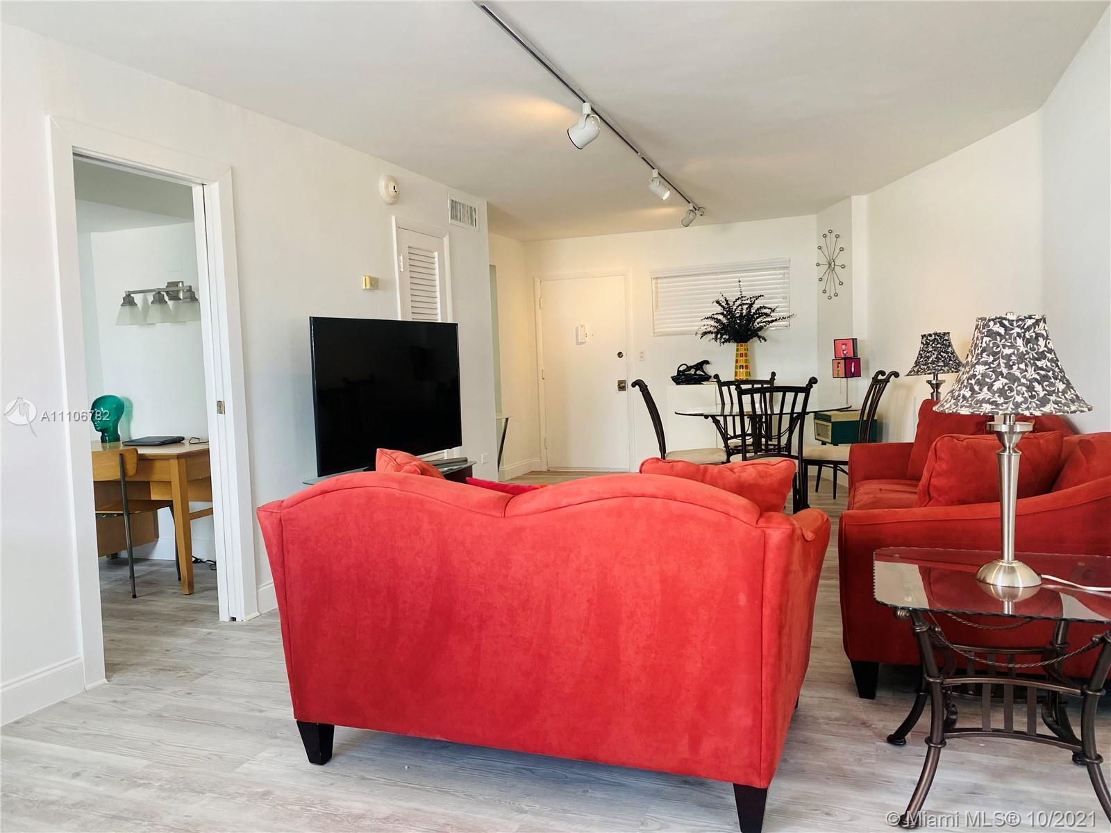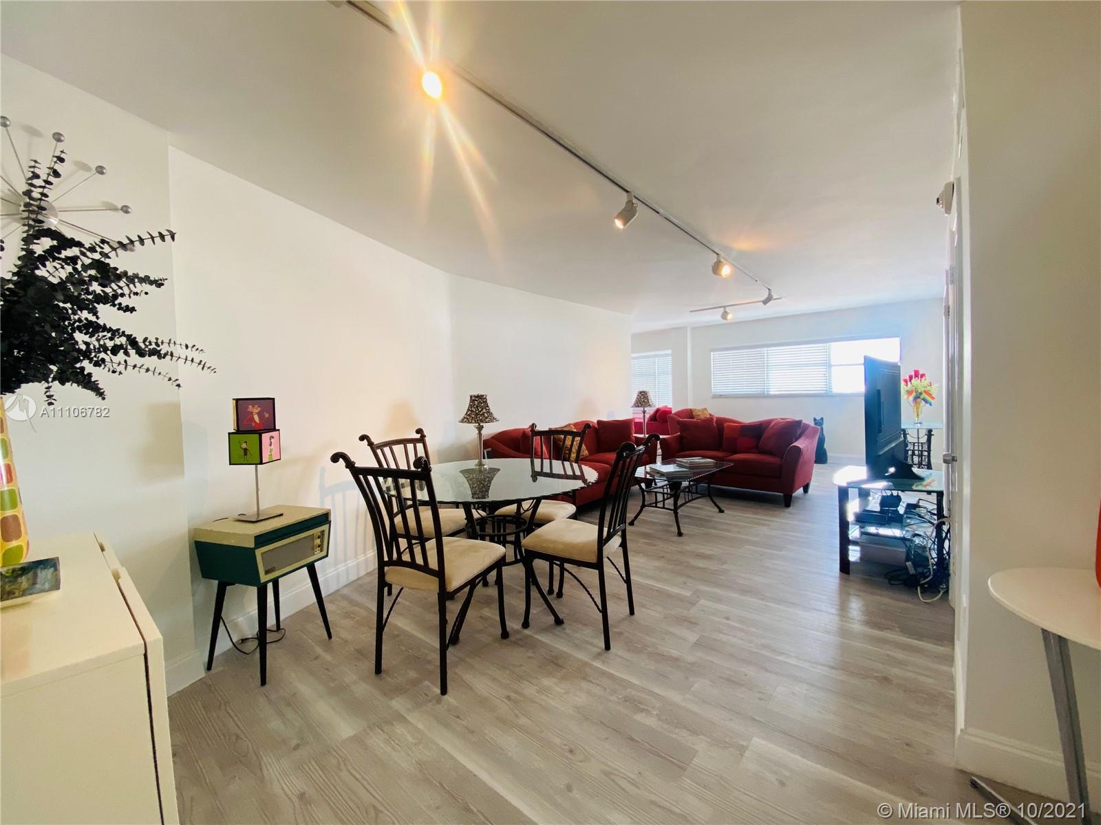 Bright/ Spacious updated unit with Luxury vinyl flooring throughout,Freshly painted renovated unit with renovated primary bath/washer dryer in unit . Split bedroom *2nd bedroom is open but can easily be converted to make full 2 bed with ensuite bath. High floor with amazing city/sunset view. Ample closet space too. Unit has assigned parking/ 2nd spot available thru association for a fee. Pool parking gym and just steps to Lincoln road, restaurants/ entertainment and of course the beach and board walk. Financially healthy building with reserves. 50 recertifications completed. Pets allowed up to 75lb Great investor or second home. Easy to Show GENERAL UNASSIGNED PARKING INCLUDED IN SALE ASSIGNED PARKING CAN BE PURCHASED FOR 15K will replace General spot