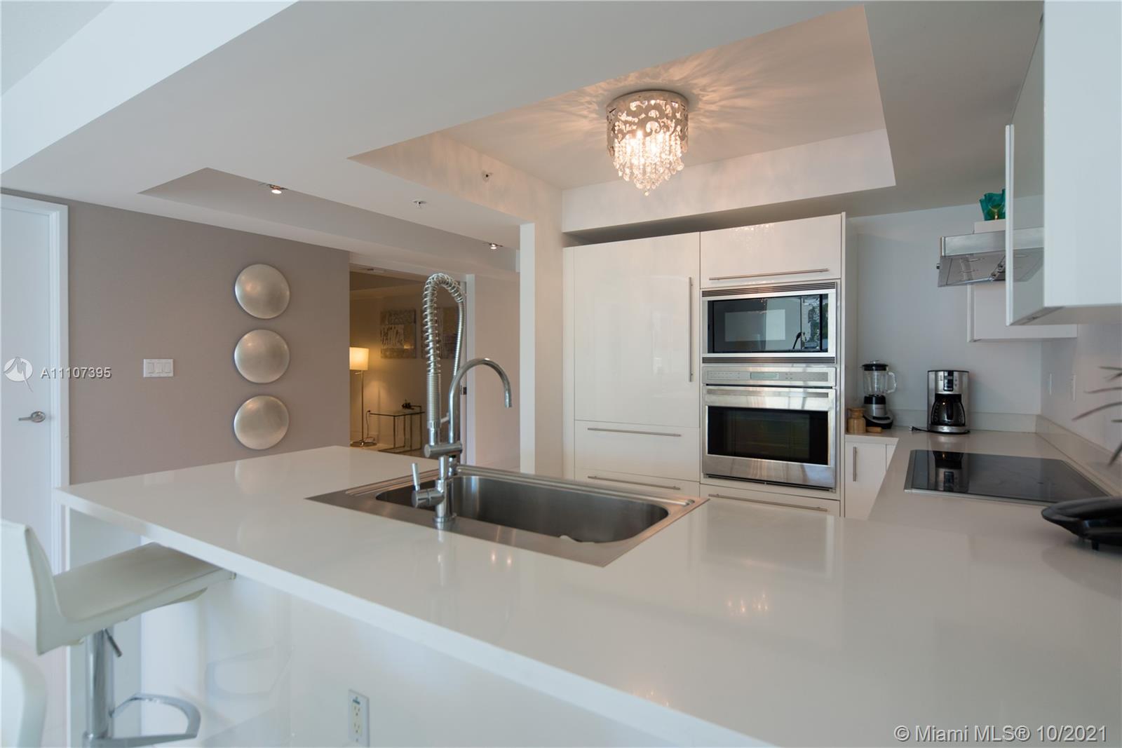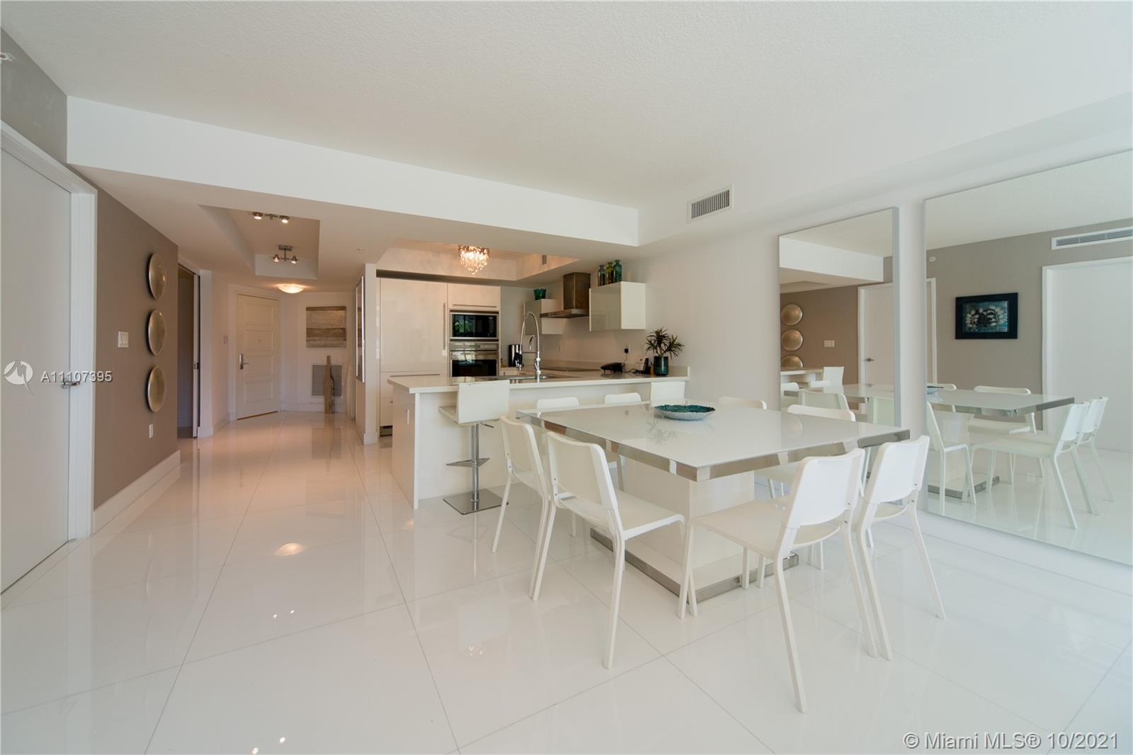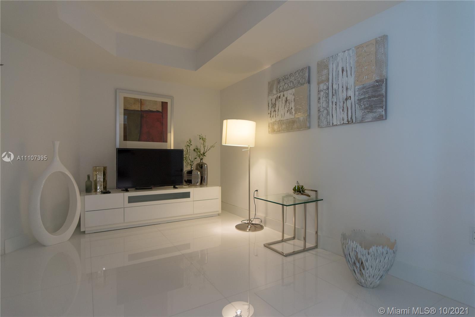 Turnkey, townhome floor plan 2 + Den can be converted into a 3rd bedroom. Professionally decorated with gorgeous furniture. High ceilings and beautiful water views. Large built-in closets. Upgraded open kitchen. Stunning white floors throughout the unit and marble in the bathrooms. Building has 24hrs Valet / security, resort style amenities, pool, fitness center, business center, entertainment party room, beach service. Grade A school District. One assigned space + valet parking. All of this just a few steps from the beach. Park and beach across the street. Floor Plan and appliances are different than 3 bedrooms regular units.