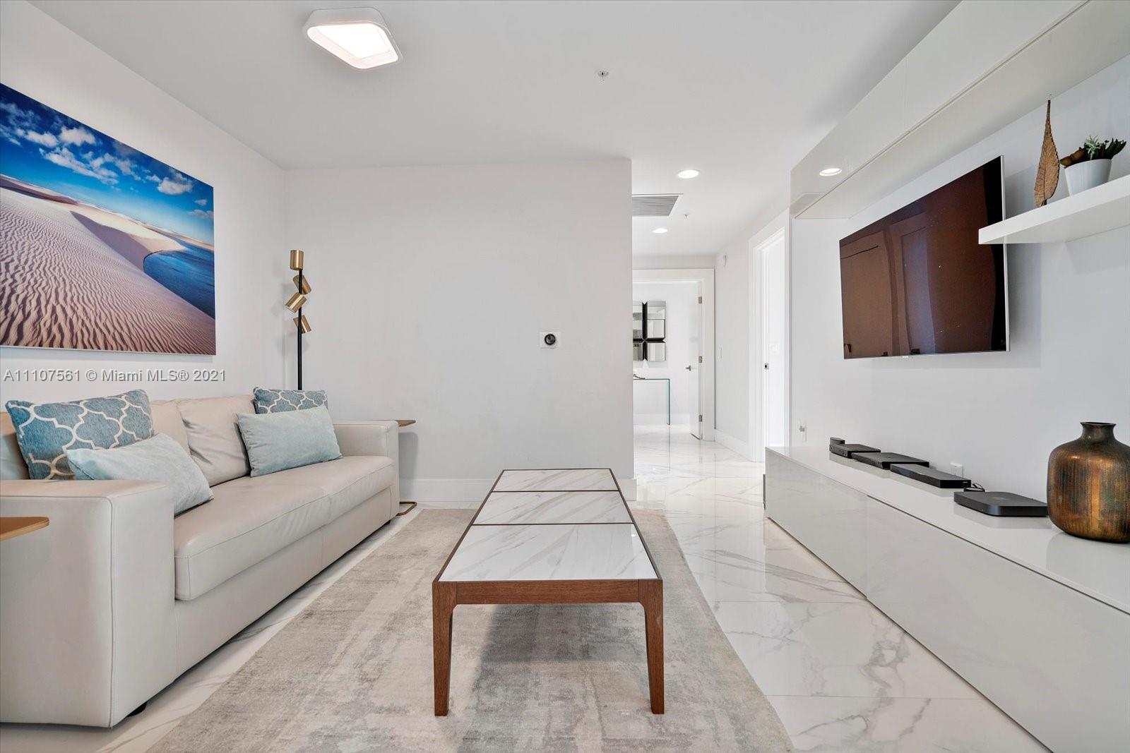 Gorgeous finished unit overlooking the Ocean, Bay and Intracoastal waters. Delicate finished with white porcelains floors, drop ceilings, built in closets and electric shades in every room. Spacious 3 bedrooms plus den and three and half bathrooms, with an open floor plan great entertaining. the Reserve at Marina palms offers a unique waterfront lifestyle, 5 star amenities, infinity pool overlooking the Intracoastal, water sports private fill service marina, boat rentals and much more. Unit rented, 24hrs notice Can be sold furnished as well. Unit has 2 assigned parking, valet and storage.