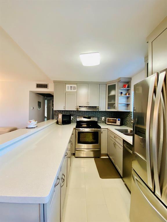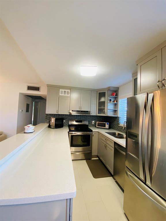 WOW1 STUNNING! UPGRADED,2 bed 1 1/2 bath GROUND Floor End CORNER unit. with Serene Water View. Kitchen has Double sink,,Stainless steel appliances and. quartz counter tops.Both bathrooms are updated.Neutral colors, Large tiles Partially Furnished. Close to Hastings fitness Center. Come enjoy the many amenities that Century Village offers. Relax and enjoy resort style living for the active 55 + Adult.