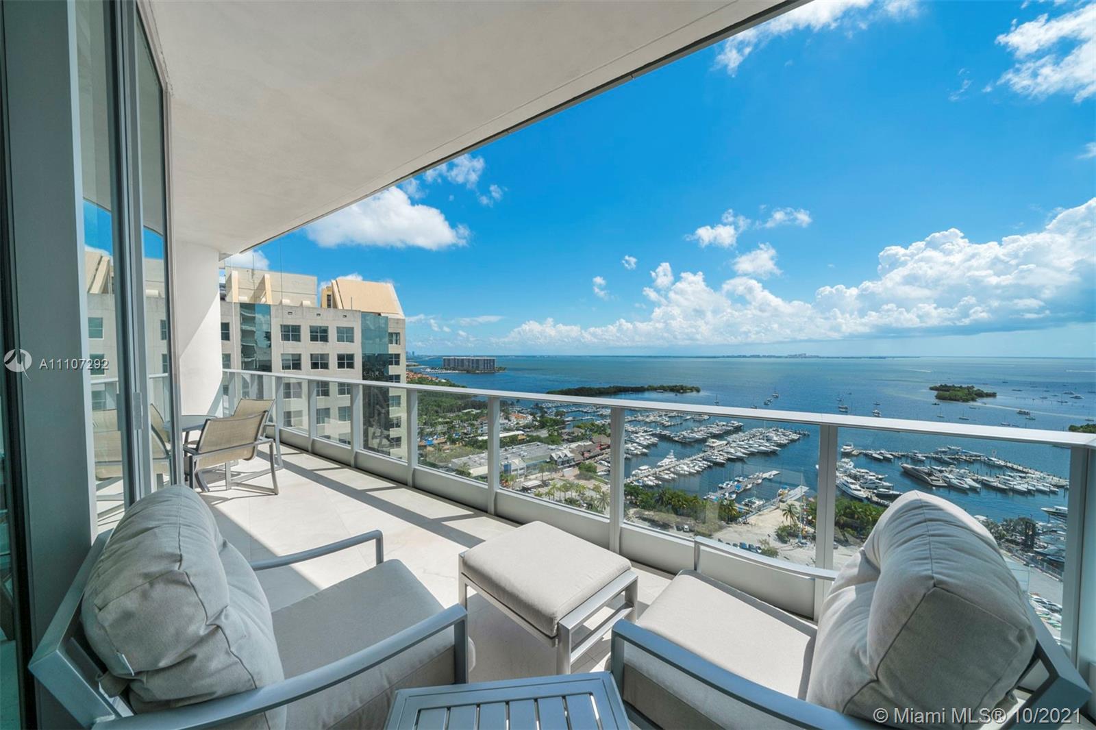 Recently redecorated and stunning 2,640 S.F. residence on the 26th floor of the Grovenor House in Coconut Grove. Just one floor below penthouse level, with the highest ceilings in the building, spectacular views of Biscayne Bay, and seamless indoor living areas bordered by a spacious balcony looking out over the Bay. Expansive windows and glass doors bathe the interiors in natural light. The sleek and stylish kitchen features custom cabinetry by Snaidero, Italian granite countertops and integrated high-end appliances. All three bedrooms have en-suite bathrooms and private balconies, ensuring panoramic views. The main suite bathroom is marble, with double vanities and separate bath and glass-enclosed shower. Exceptional design, views and amenities, close to world-class shopping and dining.