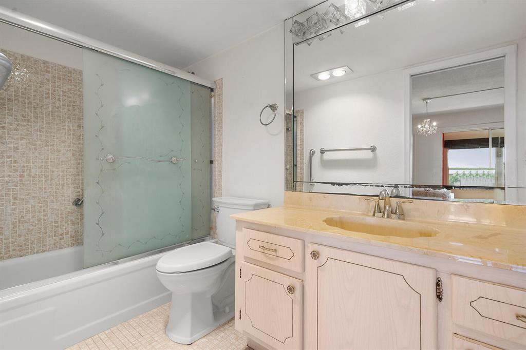 DELIGHTFUL! Bright & spacious two bedroom, two bath penthouse waterfront condo located in the desirable Wellington section of Century Village. Updated kitchen with granite counters and Thomasville cabinets. Updated full guest bath with step in shower. The large, enclosed lanai offers extra space and lovely water views. Spacious bedroom suite with tile floors, walk-in closet, ensuite full bath, and access to the lanai. Neutral tile flooring, set on the diagonal, throughout. Accordion shutters. Steps to elevator. Sold as is. Century Village is a 55+ community with...