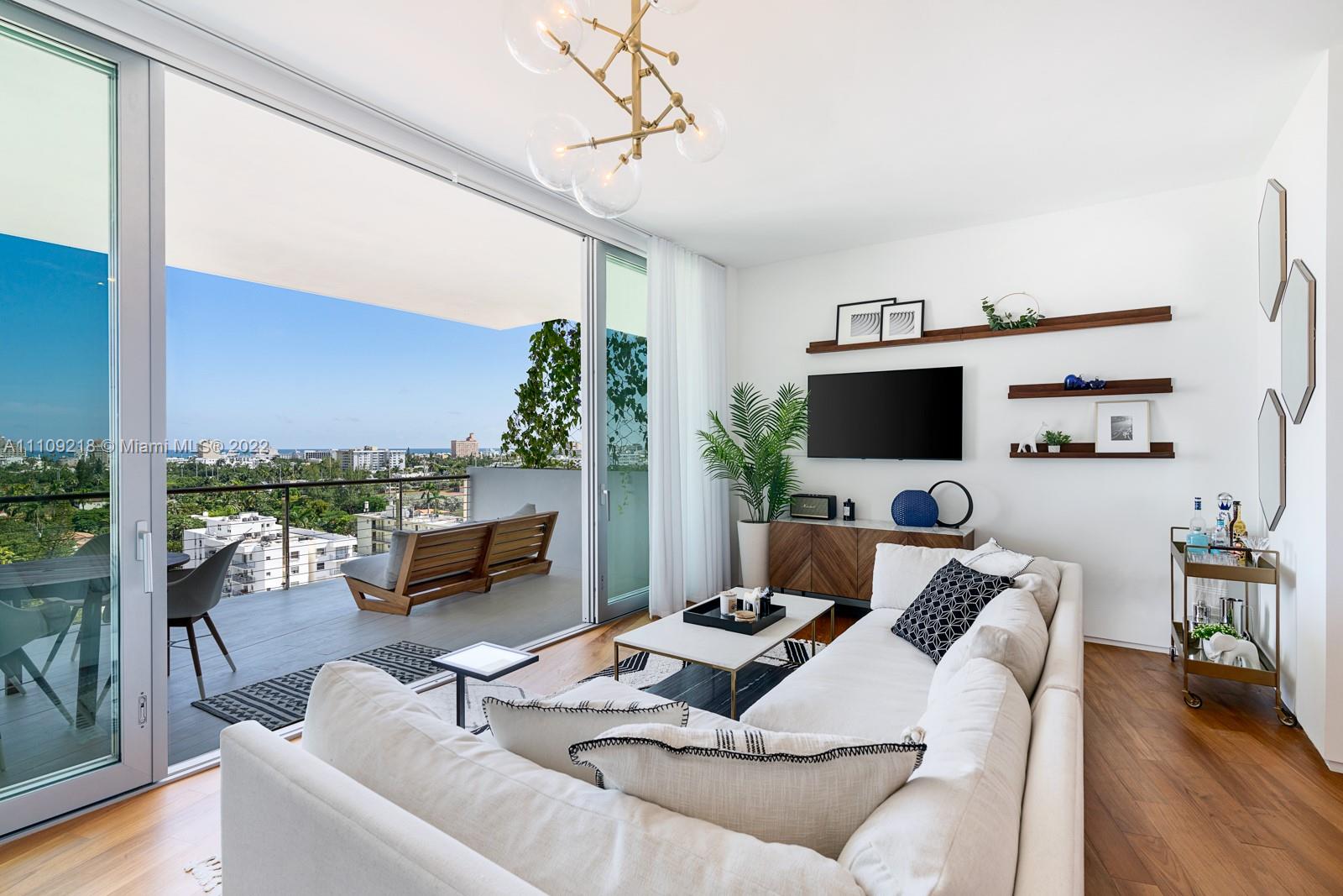 Step Inside With Me! High floor, 2 bedroom residence in Miami Beach's newest, premier waterfront building - Monad Terrace. With panoramic views of South Beach and the ocean beyond, enjoy seamless indoor/outdoor living with two expansive terraces. Exceptional finishes are featured throughout include teak and marble flooring, kitchens by Gaggenau with Calacutta counters and sumptuous marble baths with designer fixtures. Thoughtful upgrades elevate this home with custom built-out closets/storage, motorized window treatments, custom wood dining table and balcony green wall. Award-winning architect, Jean Nouvel, delivers this celebrated masterpiece with only 59 waterfront residences perfectly positioned between the popular neighborhoods of Sunset Harbour and South of 5th.