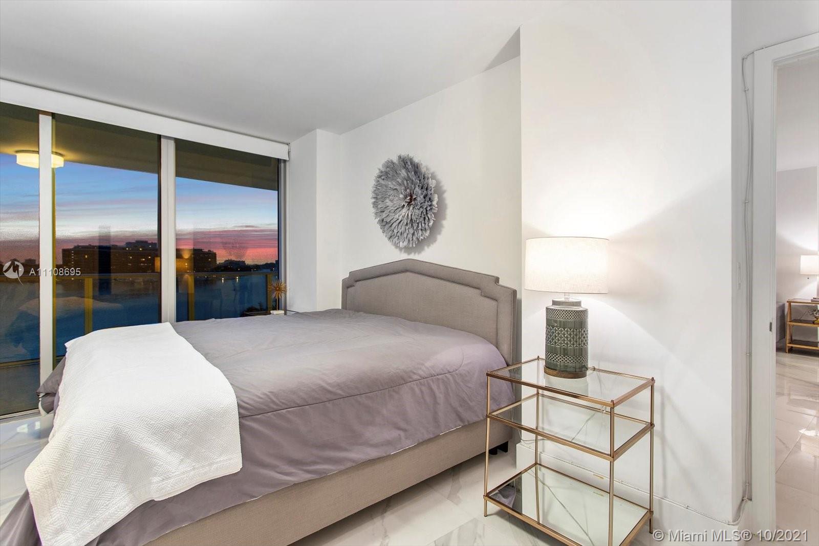 In Peloro, exclusive waterfront boutique condominium. This beautiful 3 beds 3.5 baths corner unit with stunning unobstructed views of the Biscayne Bay, and the Intracoastal, features an open living area with porcelain floors throughout, European inspired kitchen design, with Bosch stainless steel appliances. Impact hurricane glass throughout. Enjoy the sunset views int the large balcony. Luxury amenities include a waterfront infinity pool, jacuzzi, w/ lounge areas, and Summer Kitchen, fitness center, sauna, library/business center, rooftop with sunrise/sunset deck, 24-hrs concierge, valet parking, and private marina with 18 dock slips. 2 self-parking spaces assigned. This condo allows the 30-day rental, 12 times per year. Water, Internet, and Cable Service included in the Maintenance fee.