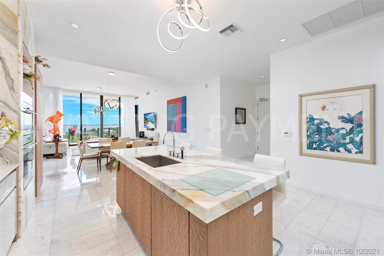 Beautiful custom Two Park Grove Residence 8B. Boasting 3bdrs, 3.5bths plus den encompassing the finest finishes and details throughout. Breathtaking water views of Biscayne Bay and Regatta Park from the 12'ft floor to ceiling windows. European cabinetry, ITALKRAFT kitchen with custom cabinetry, Wolf gas range and stove, Miele built-in coffee maker, Subzero refrigerator/freezer and wine cooler. 5 star amenities including 24hr concierge, owners poolside restaurant Alluva, butler service, fitness center, full service spa, yoga room, 4 pools w/private cabanas and pool attendant, club room, wine lounge, kids play room and much more. Resort living in the heart of Coconut Grove. A must see.