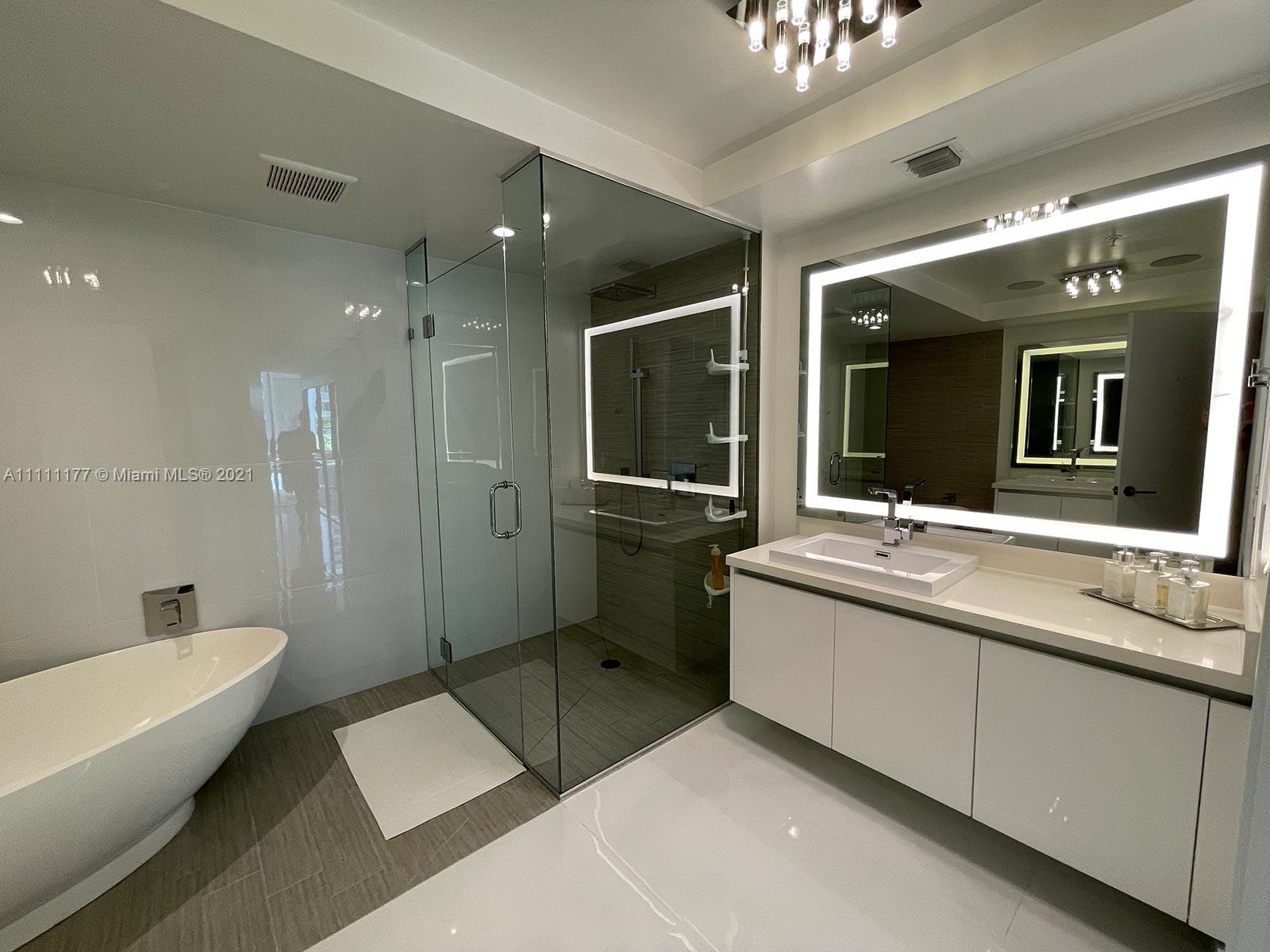 3 bedrooms, 3,5 bathrooms, waterfront corner unit at Parque Towers in Sunny Isles within walking distance to the beach. This impeccable residence has finest finishes and furniture, white glass porcelain floor, blinds and shades, Italian kitchen with upgraded white cabinets and a built in wine cooler, top of the line appliances, built-in closets, light fixtures and much more. The oversized wrap-around balcony and floor to ceiling impact windows gives light and incredible views of the intracoastal, ocean and city skyline. Amazing amenities, 5 resort-style pools, 24H concierge, valet, billiard room, business center, kids room, state of the art gym, sauna/spa and hotel guest suites as an option for guests, private beach access and much more.