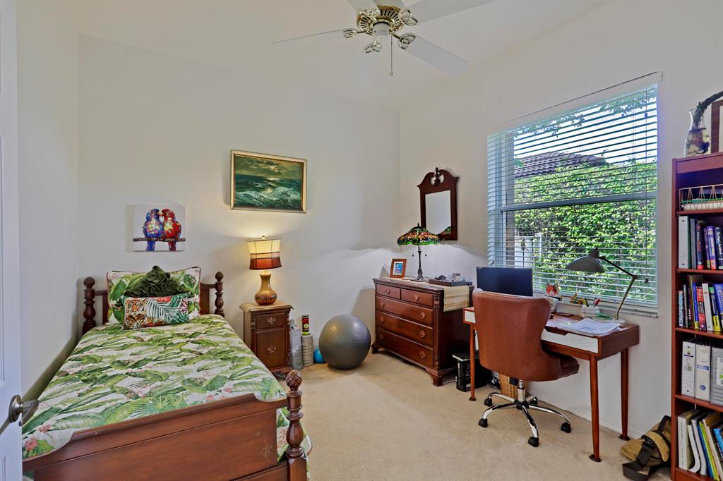 Rare 2/2/2 +Den Ventura model on quiet cul de sac in ultra convenient Andros Isle. Very large Kitchen w eat in area and lots of counter workspace. Large screened and covered patio in front adjacent to Kitchen for your BBQ or Cocktails. Formal DR. Den. Large MBR w sitting area and huge Walk In Closet. Large MBTH w Roman Tub. Accordion Hurricane Shutters. New A/C and New Hot Water Heater. POA fee includes staffed gated security, monitored home security, Basic CATV, WiFi, Broadband, Exterior Painting, Roof pressure cleaning. Fantastic clubhouse with large heated pool and spa, large Fitness Center, Pickleball, Tennis, Bocce. Private road to nearby Publix. Easy access to Downtown WPB, Turnpike, Airport, Wellington, Theatres, Restaurants.
