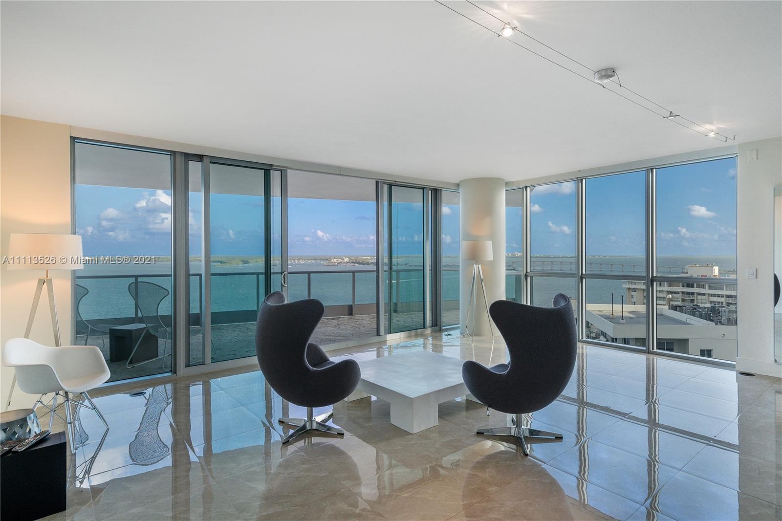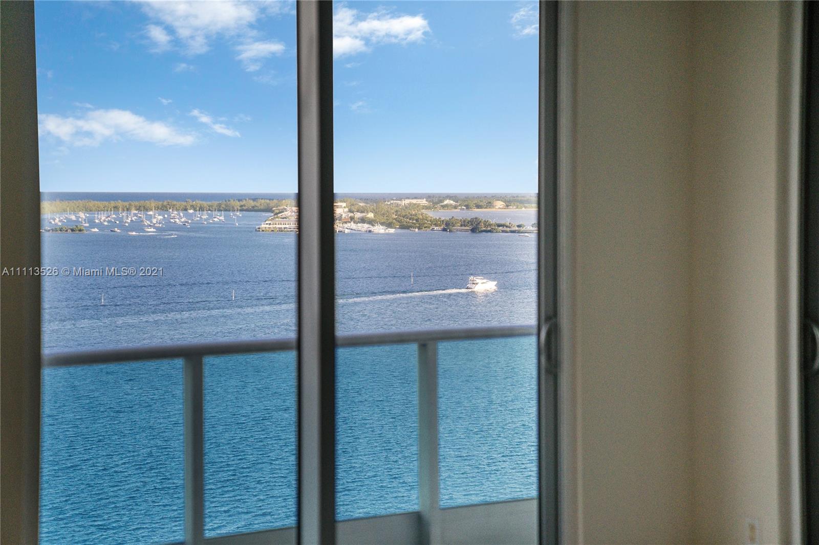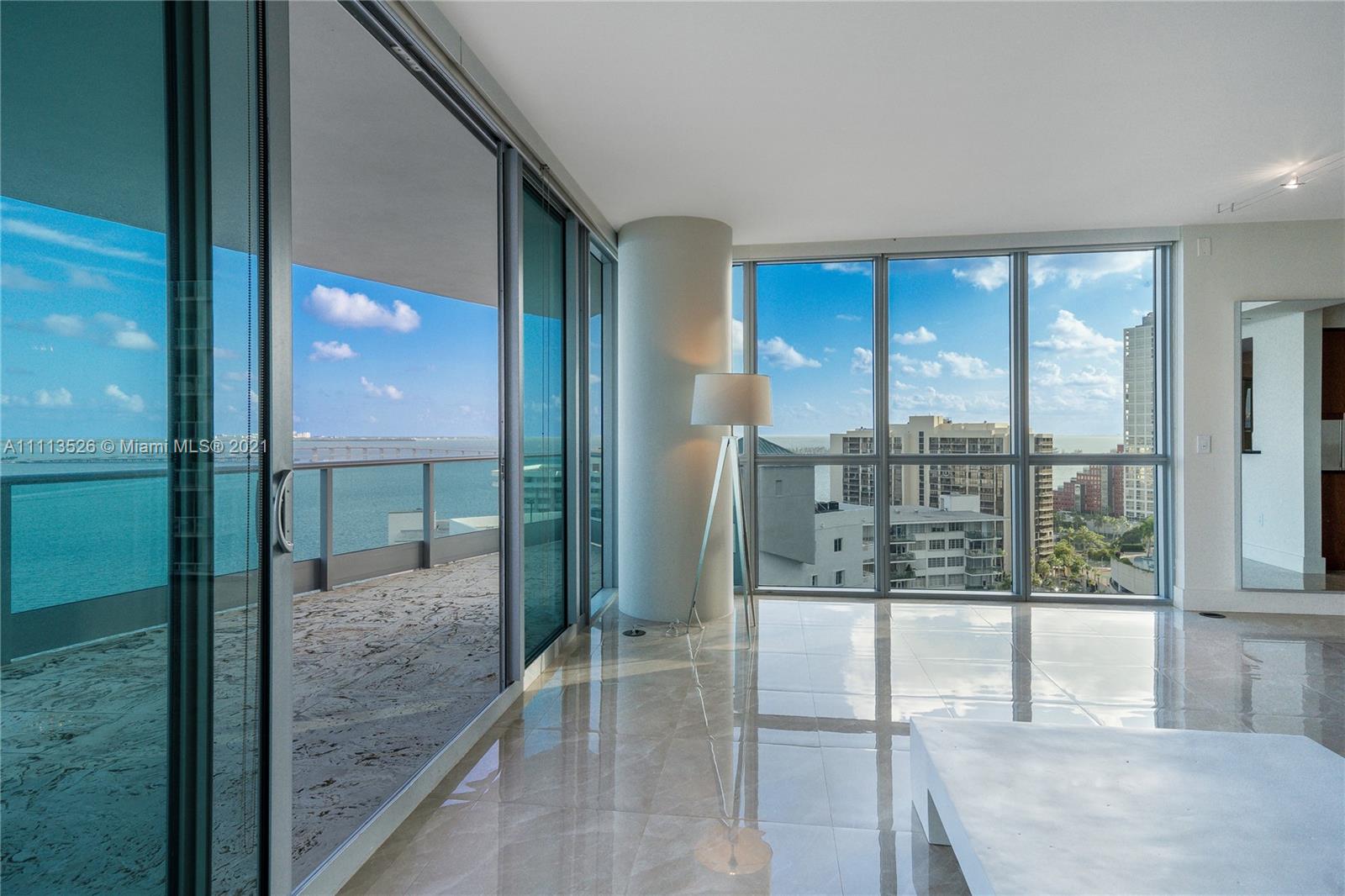 The most desirable line at Jade Brickell! Clearing all neighboring buildings, this southeast corner residence enjoys direct views of the bay, Key Biscayne and beyond. Generous, 1,878 square foot 2 bed / 2 bath + powder room, lives like a home with private elevator foyer, his & her closets and an oversized corner living room leading out to an large terrace. Impeccably renovated, maintained, and move-in ready. Jade is one of the most luxurious, classic, full-service buildings in Miami. A great opportunity amid a tight market!