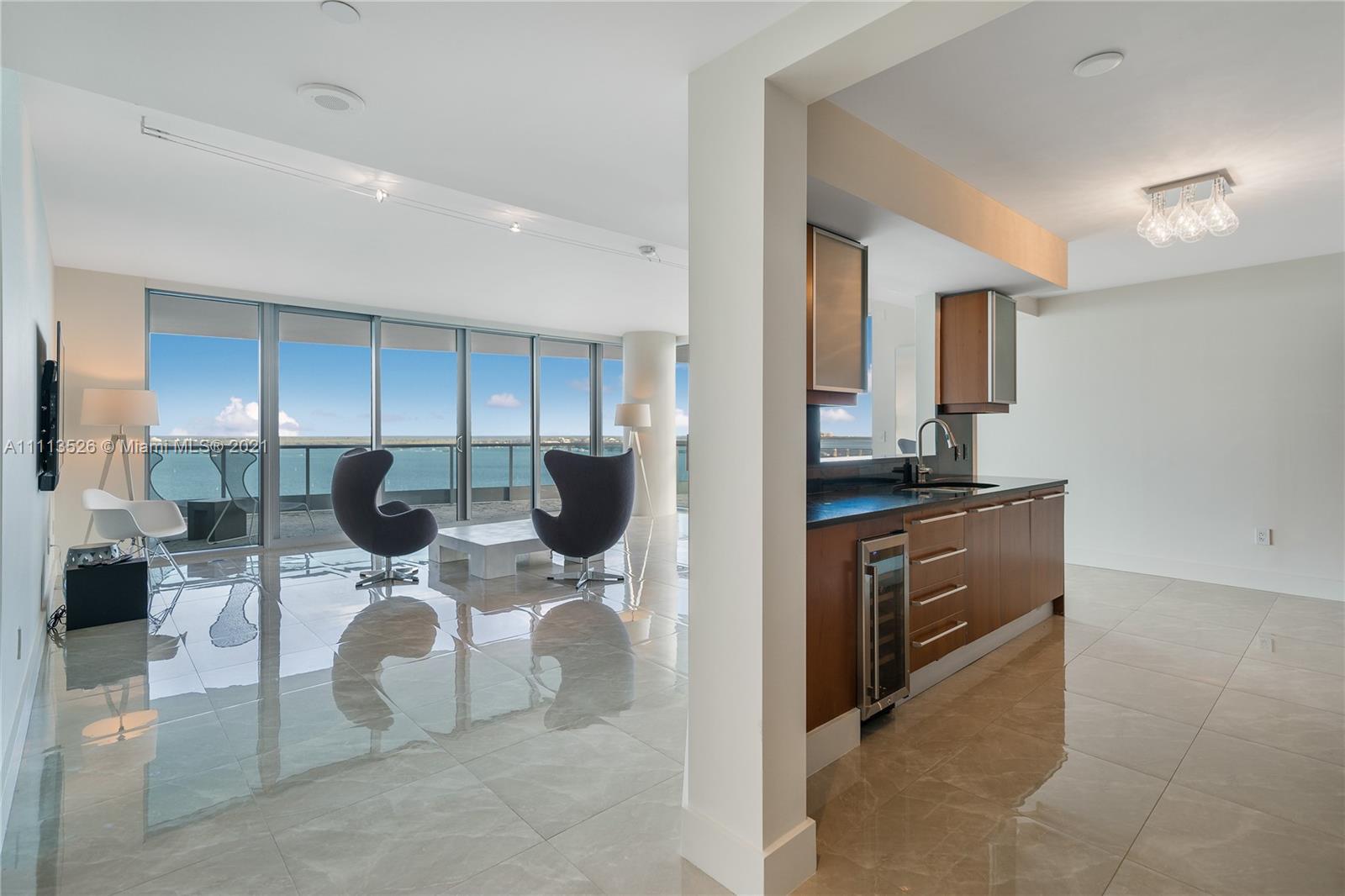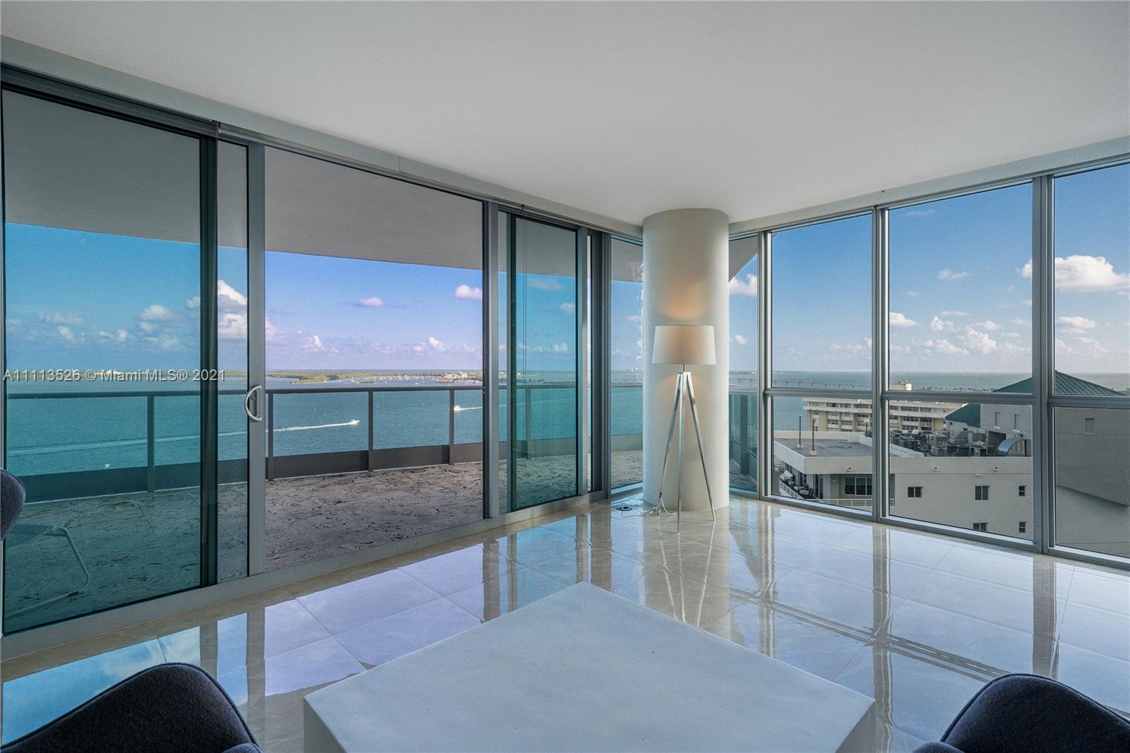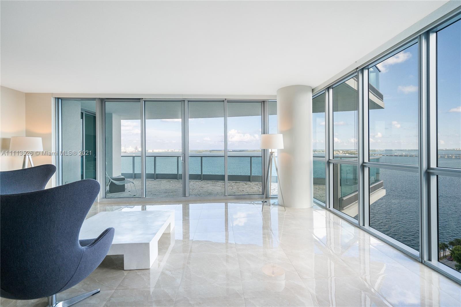 The most desirable line at Jade Brickell! Clearing all neighboring buildings, this southeast corner residence enjoys direct views of the bay, Key Biscayne and beyond. Generous, 1,878 square foot 2 bed / 2 bath + powder room, lives like a home with private elevator foyer, his & her closets and an oversized corner living room leading out to an large terrace. Impeccably renovated, maintained, and move-in ready. Jade is one of the most luxurious, classic, full-service buildings in Miami. A great opportunity amid a tight market!