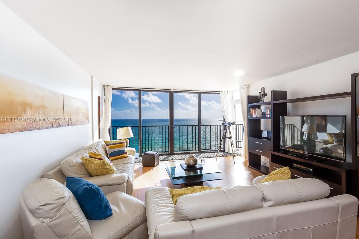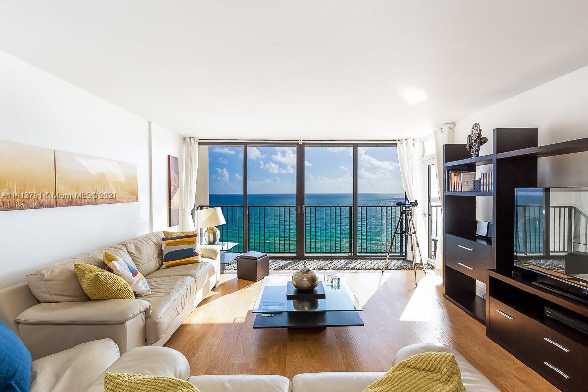 This bright and spacious, highly desired corner 2bd/2ba condo is a MUST-SEE! Enjoy the breathtaking DIRECT ocean view from the living room, master bedroom and the private wide 17th floor terrace. The Quadomain complex is situated on a wide, pristine beach and is a full-service complex with 24-7 security, valet parking, beach service, 2 pools, 2 gyms, beauty salon, restaurant, kid’s room and much more! Please note: the apartment is tenant-occupied (lease expires Dec 3, 2021) ***Note, the tenants brought in a lot of personal items (which are not on the pictures). Also, the living room floor has been changed to white square tiles.