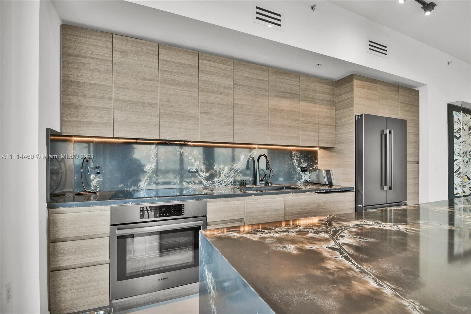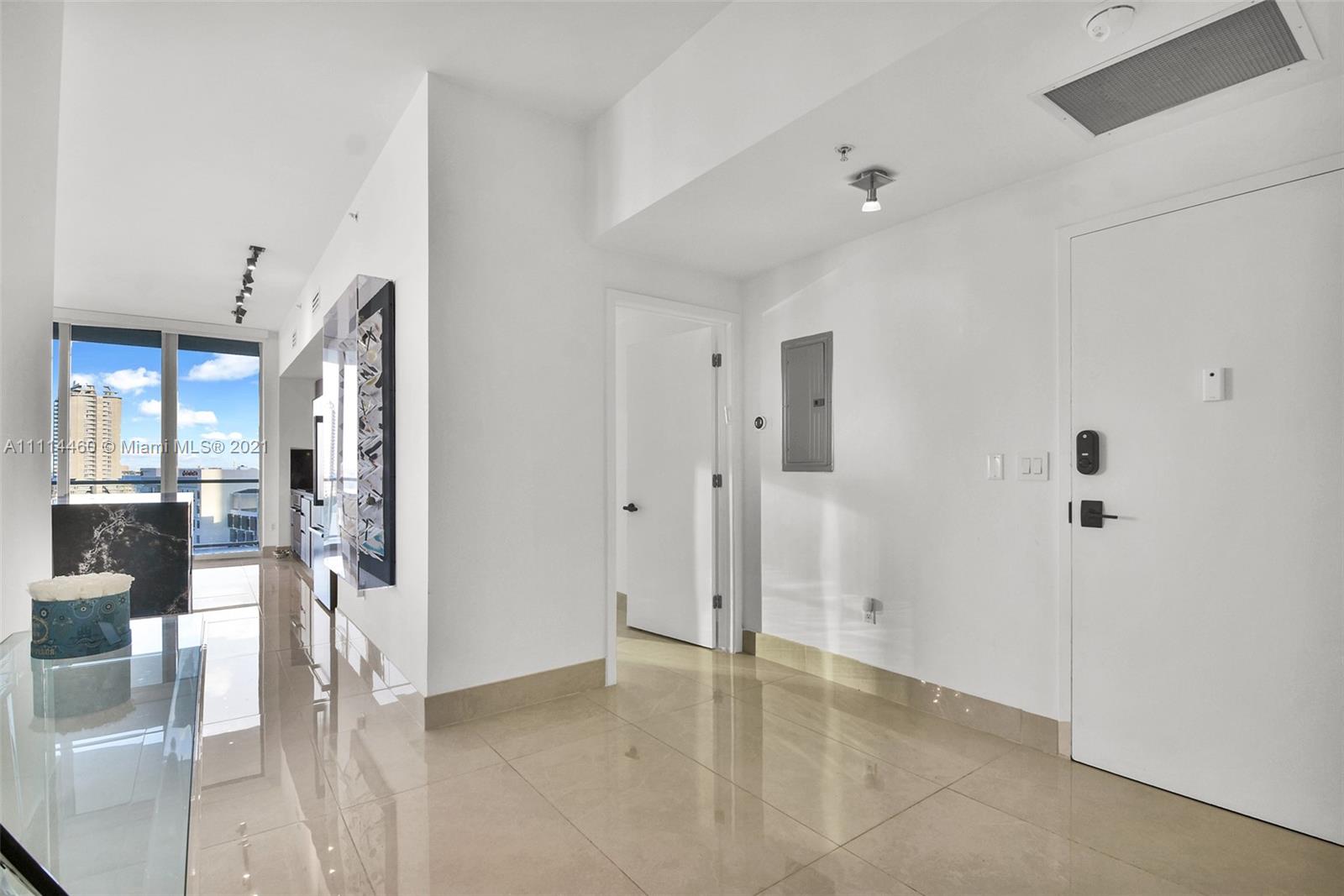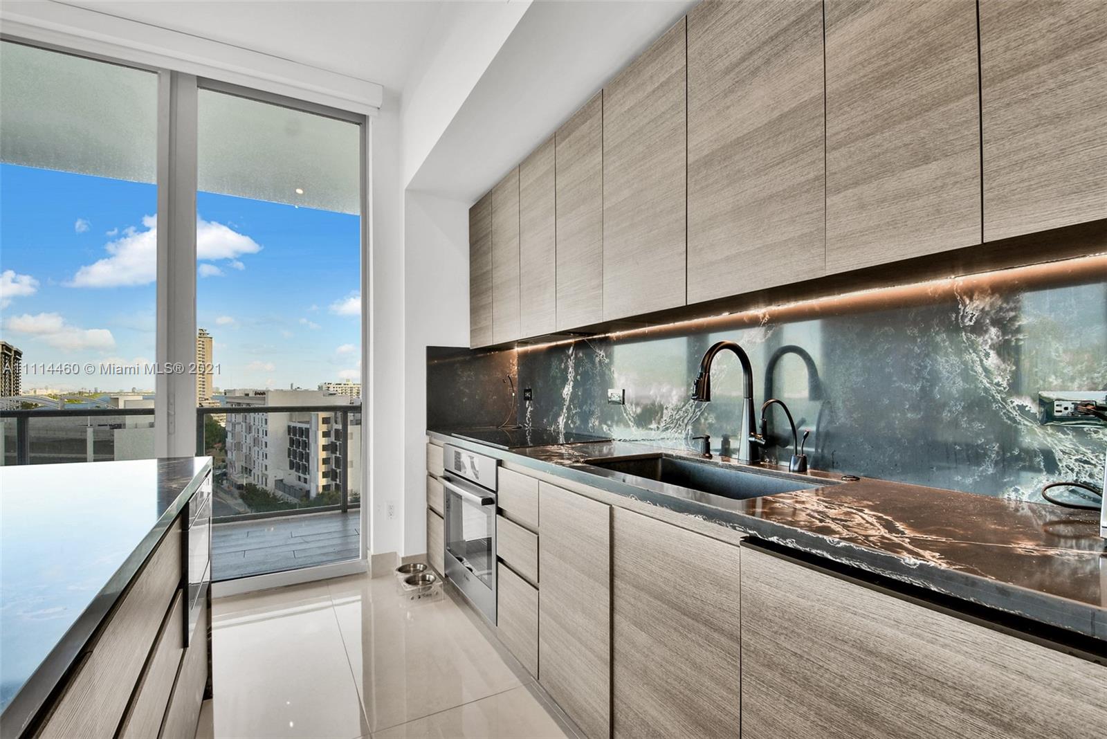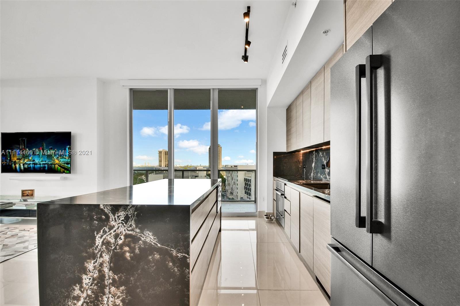 Completely remodeled three-bedroom two and a half bath with close to 1,600 sqft in the prestige 2midtown building. The owners picked only the finest finishes. Brand-new custom kitchen, new bosch appliances, under-cabinet LED lights, imported quartz waterfall island and backsplash. 24X48 Spanish porcelain tile, huge master suite and two large guest bedrooms. Custom closets in all bedrooms and a walk-in closet in the master. New bathrooms, showers and vanities. A smart home system in the entire residence, from the electric blinds, lights sound system and even the showers.Wrap-around balcony with porcelain tile offers city and intercostal views. Amenities include a heated pool, hot tubs, gym, concierge, valet and more. Walk to Parks, restaurants, shopping centers, Design District and Wynwood.