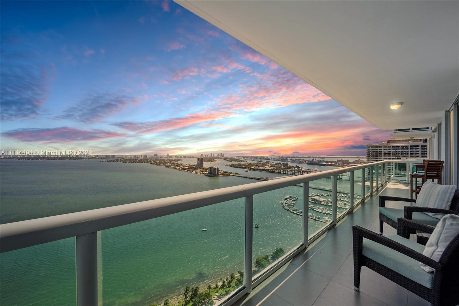 Spectacular 2/2 split floor plan unit in the 05 line of the amazing 1800 Club Condo building in sought after Edgewater. Prime location with beautiful views directly across Biscayne Bay & Margaret Pace Park within walking distance from the Performance Arts Center, and minutes from the best areas in Miami: Downtown, Wynwood, Brickell, Miami Beach, Port of Miami and even the airport. Floor-ceiling sliding impact glass doors in both bedrooms & living room, waterfall showerheads in bathrooms, open kitchen, 12 bottle wine cooler, spacious walk-in closets, washer and dryer. Building offers a fantastic bay view gym, spa, 3 pools, sky lobby and party room. Walk to cafes, restaurants, night life and so much more.