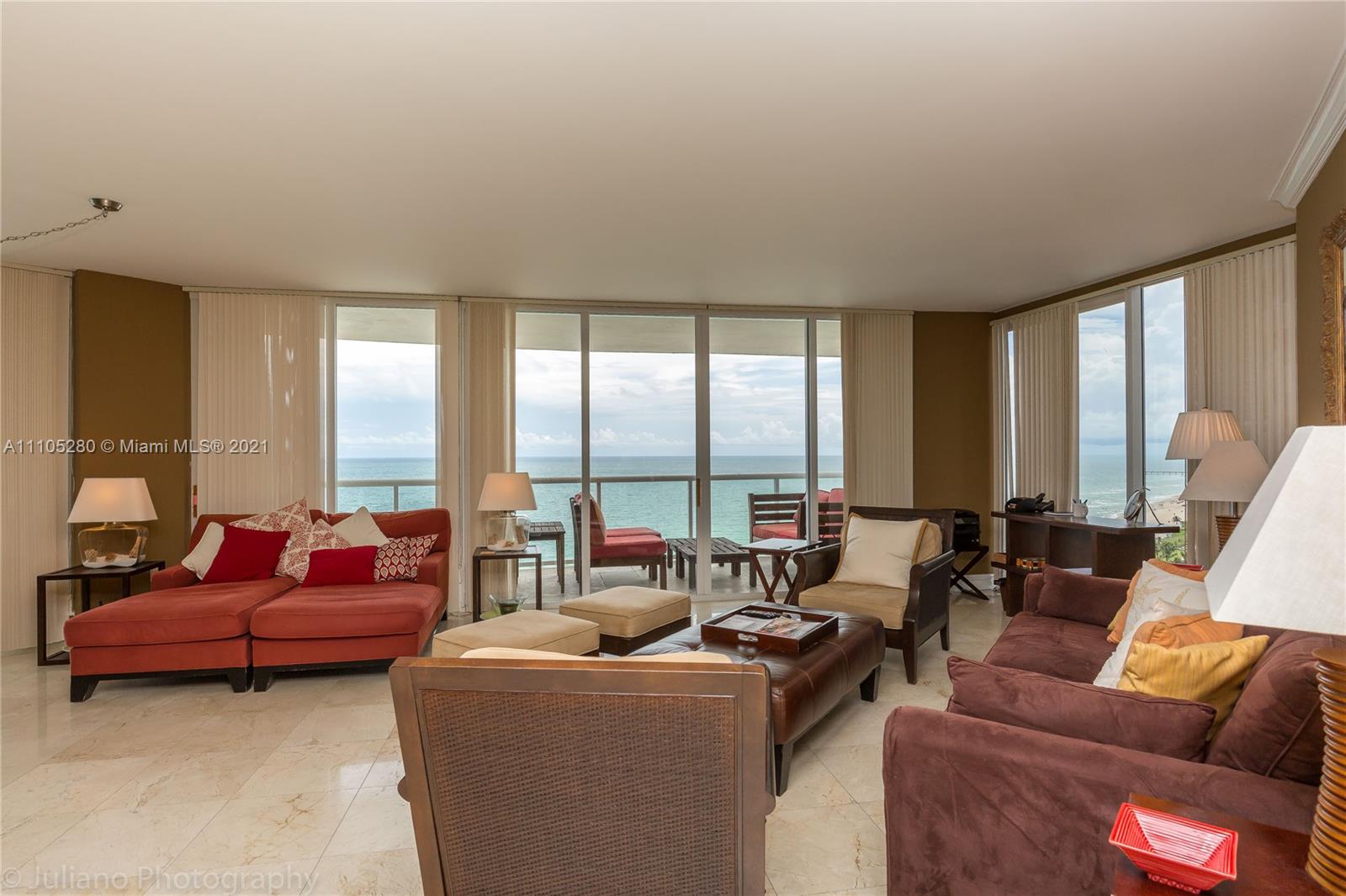 LARGE 3 BEDROOMS 3.5 BATHS PLUS DEN WITH DIRECT AND BREATHTAKING OCEAN VIEWS. BOASTS FLOOR TO CEILING WINDOWS . PRIVATE ELEVATOR TO UNIT, BEACH SERVICES, BBQ, HEATED POOL, JACUZZI, TENNIS COURT. VALET SERVICES, FULLY EQUIPPED GYM AND SPA.