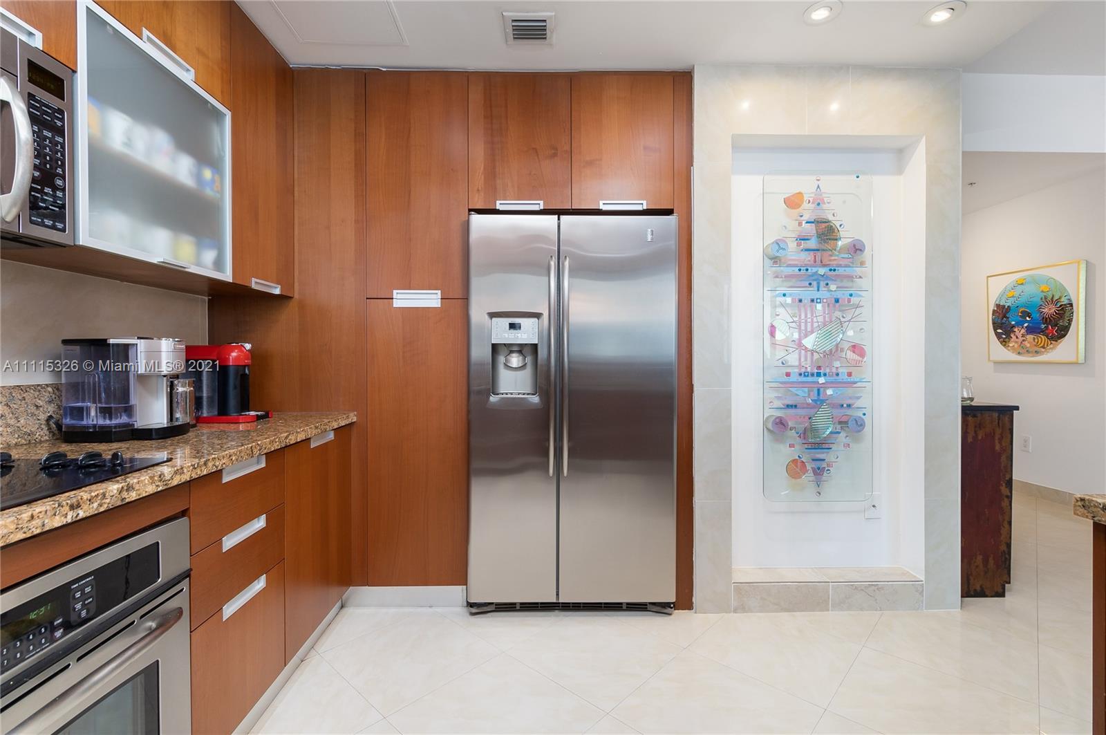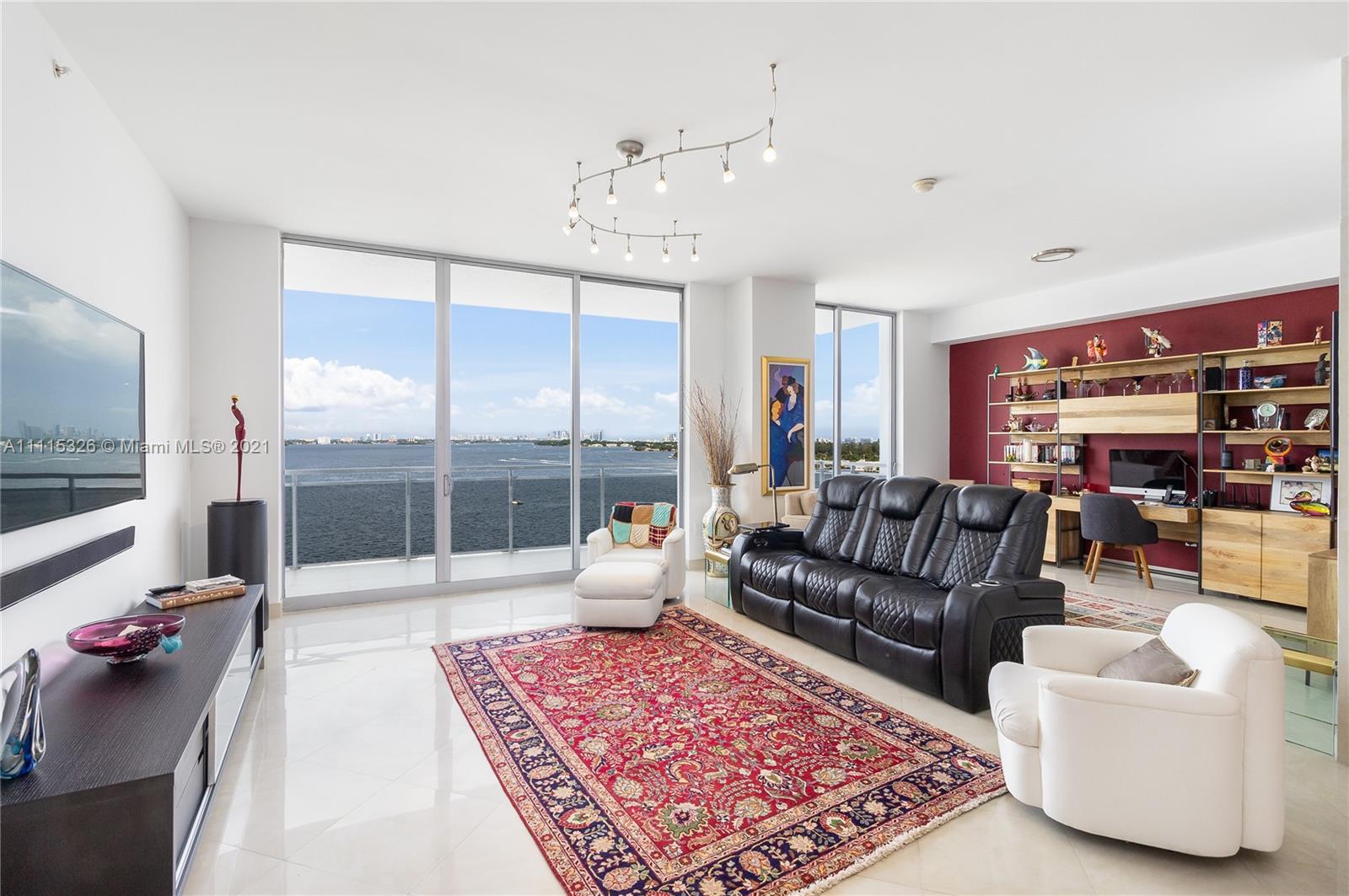 Enjoy amazing sunsets from this desired corner unit with panoramic views from every room. Upgraded with imported floors, quartz countertops, and high-end appliances. Perfect layout for entertaining with an open living concept. The unit features 9" floor-to-ceiling sliding impact windows, open den, an expansive kitchen with plenty of pantry/storage space, and 2 spacious covered parking spaces. The building includes a pool overlooking the bay, exercise room with Miami Skyline views, a billiard/social area, and additional storage. Centrally located in the heart of North Bay Village, close to restaurants, supermarkets, and minutes away from Biscayne and Miami Beach. High-speed internet and cable included. Fully renovated building, $40K assessment paid off by Sellers. Less than $330 per SqFt.