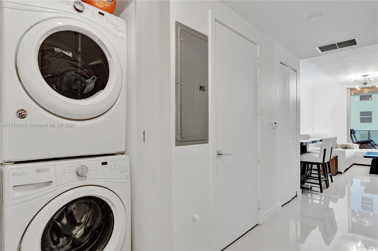 Beautiful 1 Bed / 1.5 Bath unit offering a smart layout to maximize living space. Large balcony from where you can enjoy East/West stunning views. Modern kitchen w/ stainless Bosh appliances, all tile flooring, built-in closets, glass door shower enclosure, washer/dryer, 1 assigned parking space. Aria on the Bay is a building characterized by its beautiful flowing exterior and incredible, luxury amenities such as: Sunrise + a Sunset Pool, Full Gym, Spa, Theater Room, Children/Teen's Playroom, Conference Rooms. All in a superb location, close to Marina, park, walking distance to Supermarket, shops, Restaurants, FTX Arena, Arsht Center, in the heart of it all!
