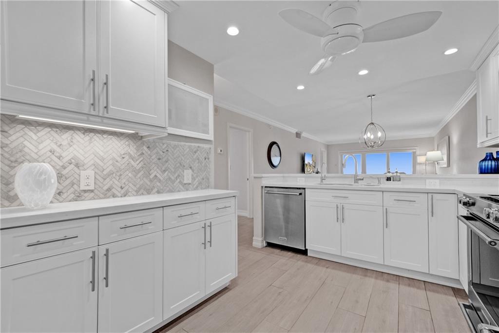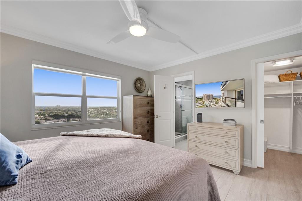 Beautifully renovated, gorgeous 2BD/2BA condo on the sand in Lauderdale By The Sea! High-end modern finishes, wood plank floor tiles, crown molding, updated bathrooms and a fabulous kitchen with quartz counters and stainless steel appliances, sold turn-key. High floor with large open balcony has NE views of the ocean and SW views of the city, Intracoastal and stunning sunsets. There is a washer/dryer in unit, a storage room on the floor and one covered parking space. Leisure Towers is directly on the sand and offers private beach access, heated pool, shuffleboard and an entertainment room. Close to shops, restaurants and nightlife. Enjoy Florida living with the beach and ocean in your backyard! Rental Income Jan 1-April 15, 2022.