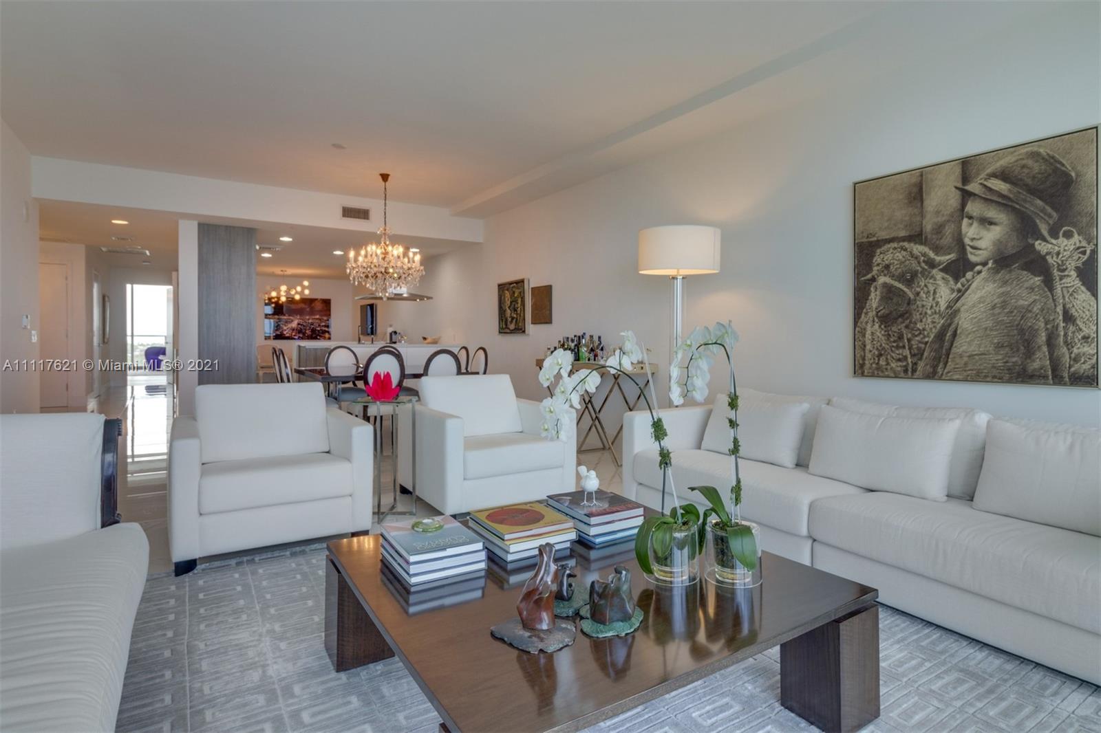 Instantly fall in love with this elegant "beach chic" home at Oceana! Perfectly finished unit offers flow-through 3 bedrooms + staff & 4.5 baths overlooking the beach, the bay & Miami skyline. Ready for move in with the finest attention to details: Snaidero cabinetry, custom closets & built-ins. Resort amenities include 500 foot private beach, recreational pool are with shade bungalows, tennis courts, a state of the art fitness center with spa, yoga studio & lap pool, entertainment room, kids' room & more