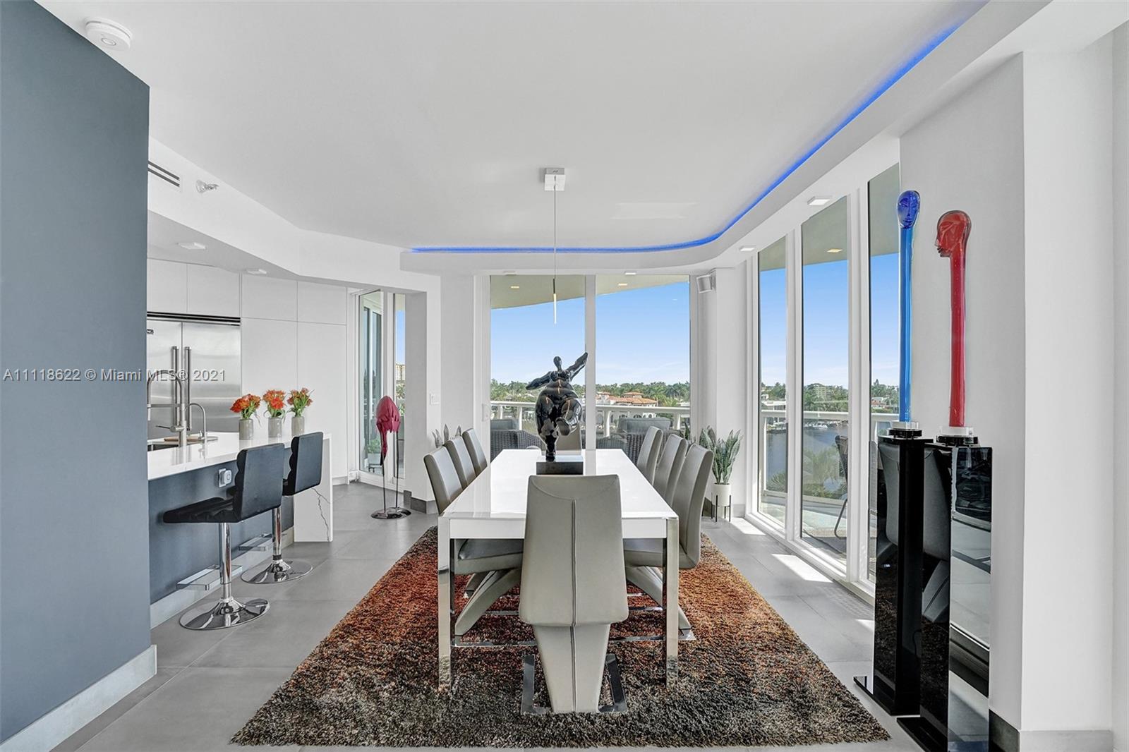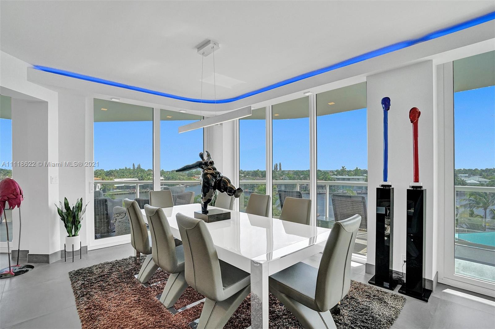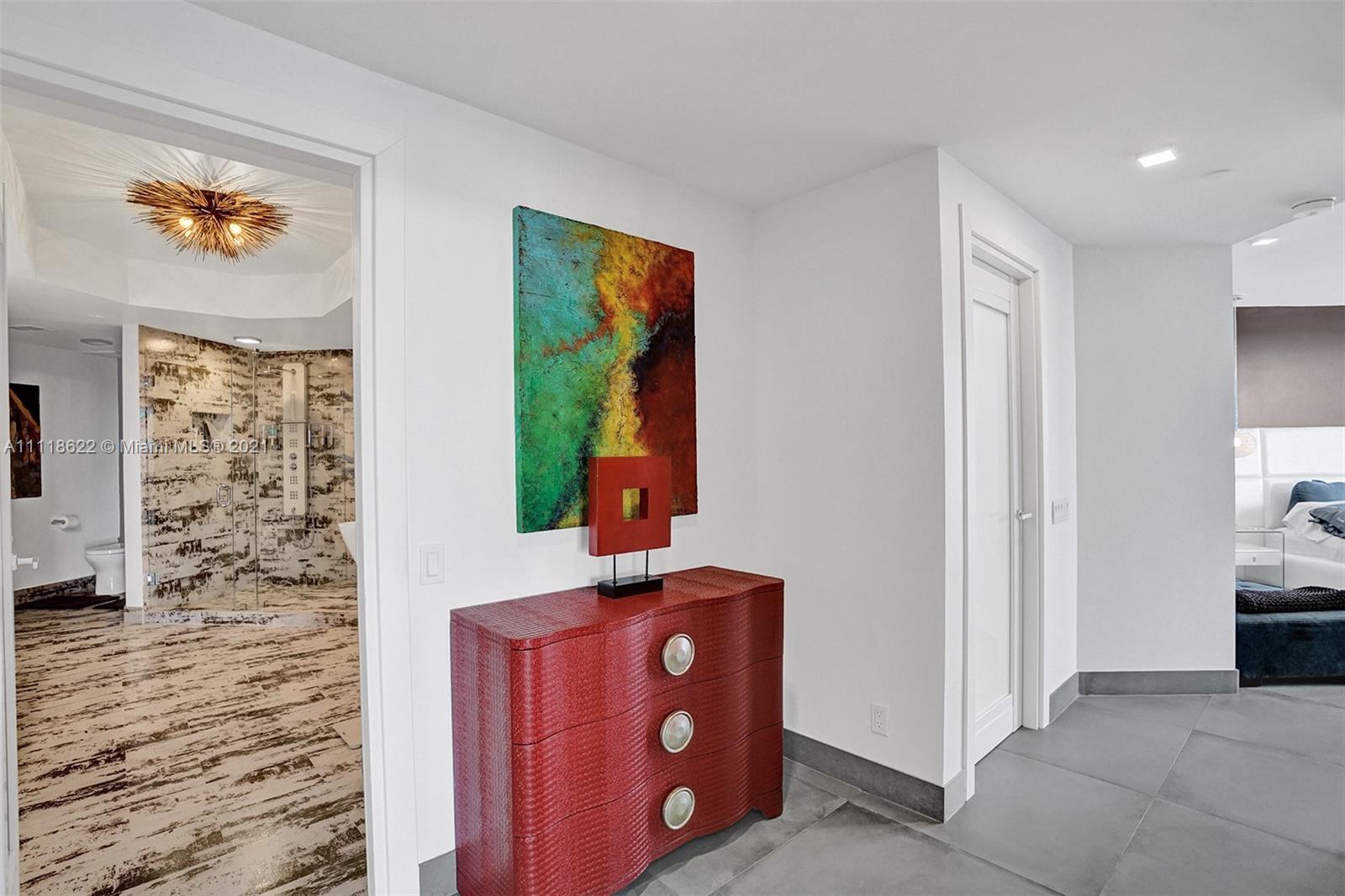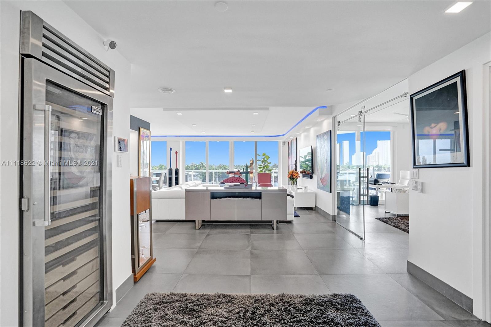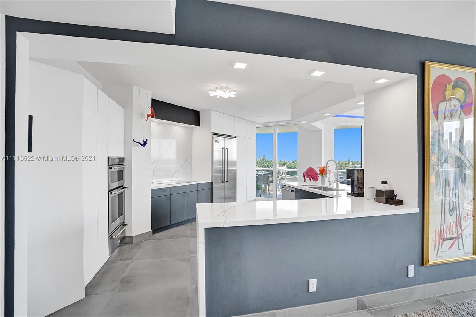 This impressive contemporary residence surrounded by Awe-inspiring water views. Fully remodeled unit with incredible outdoor space accessible from every room. Features porcelain tiles and recessed lighting throughout. LED colored lighting surround in main room. Electric shades. A stylish kitchen that flows through to the dining room. Stainless steel Viking refrigerator & Kitchen Aid appliances, Reverse Osmosis water filter, white & grey cabinets, quartz counter tops & back splash. 3 bedrooms, 2.5 luxurious baths. Master bedroom with walk-in robe & ensuite, modern free standing oval bathtub, separate glass shower with elegant porcelain tile. Extraordinary Smart home/electronics features. One Island Place, a luxury gated resort style community that has direct access to the Waterways Marina.