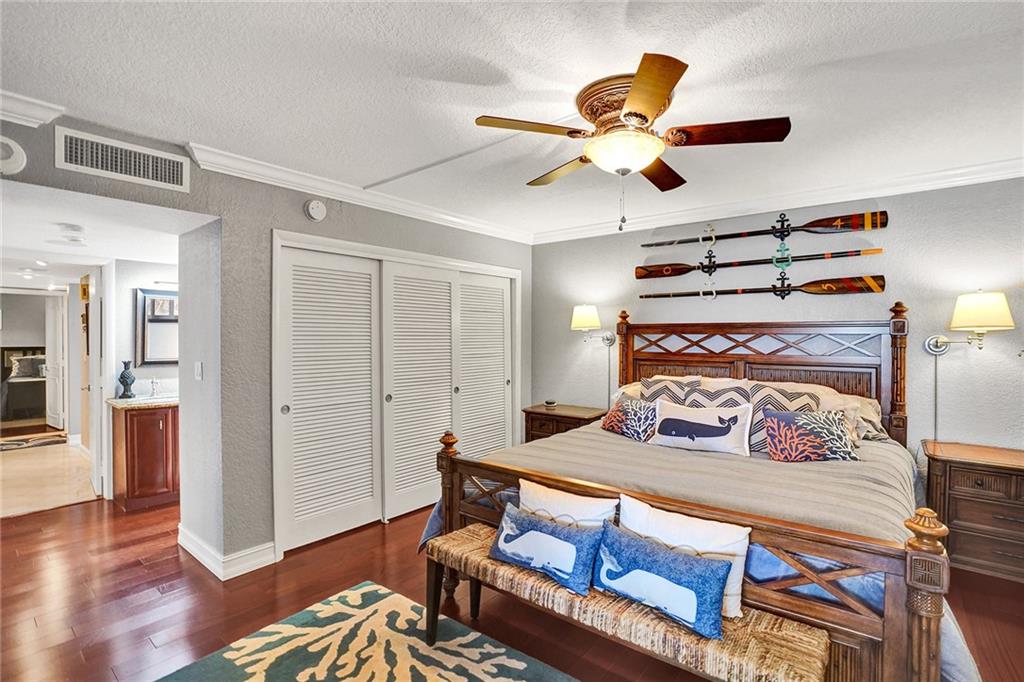 Location Location Location! Waterfront Condo with Waterviews from many parts of your unit. Spacious floor plan great for entertaining. Your unit features wood and tile floors throughout, granite countertops, stainless steel appliances, hurricane protection for all openings, and a Washer/Dryer in unit! Master Bathroom has a tub and the guest bathroom has a walk-in shower. Dining room can be converted to a 3rd bedroom Across from your deeded beach access by Elmar Beach Club. Community boat slips on a waiting list. Close to restaurants and shops!