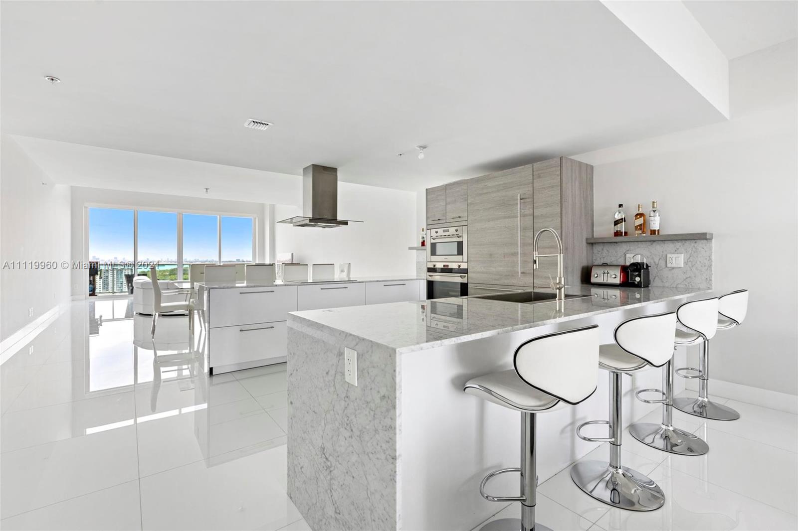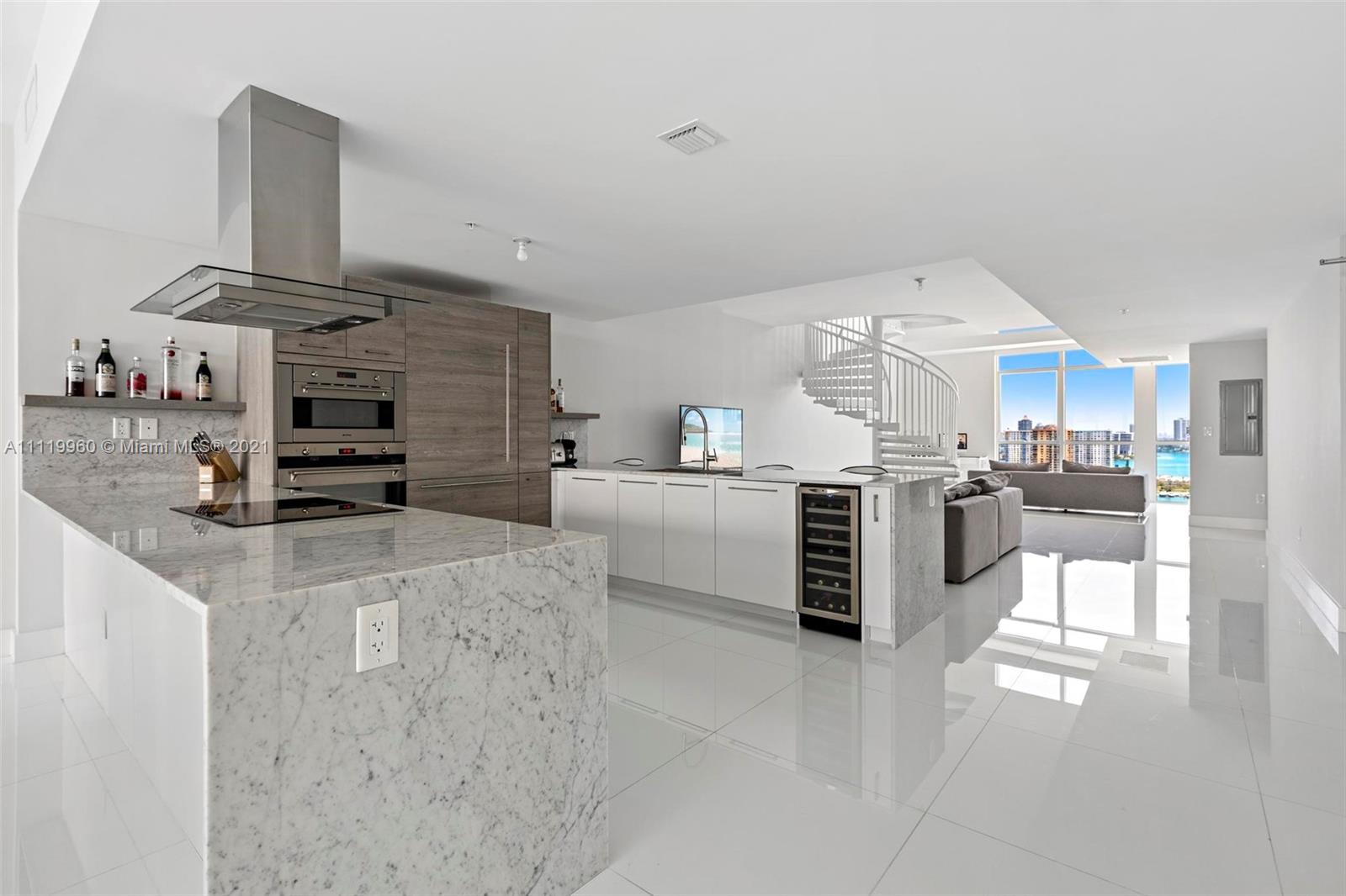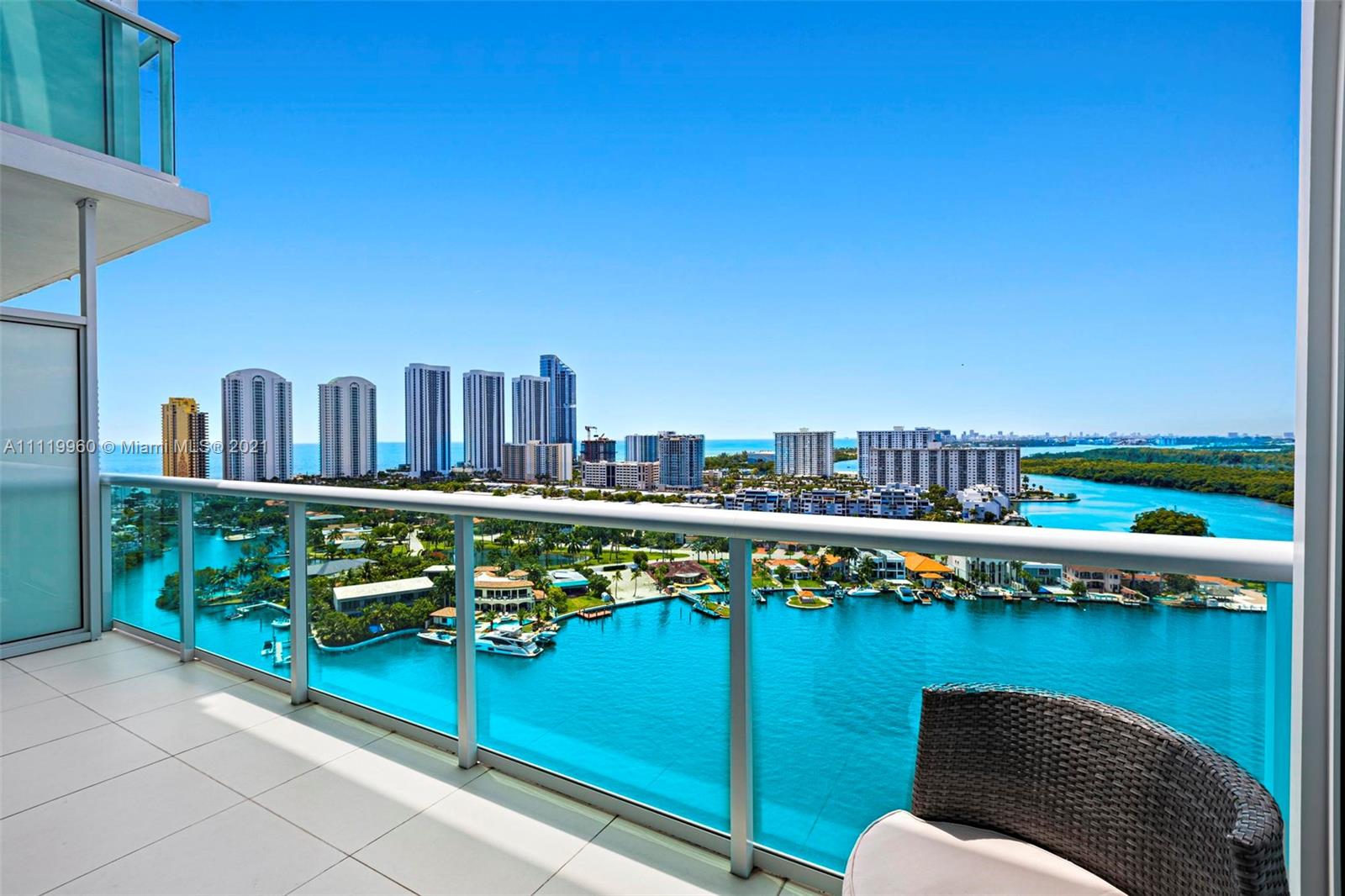 This beautiful unit 3 stories penthouse is located in the heart of Sunny Isles Beach. Big balcony and spectacular views of the Bay and the Ocean with huge rooftop deck & jacuzzi. Marvel at the view from the spacious main floor and balcony with private marina and dock below. Designer closets, room darkening electric shades, High-end appliances with granite, counters, gleaming white marble floors thru-out, spiral staircase, and grey wood grain cabinetry give a warm and sophisticated look, 2 assigned parking spaces. walking distance to the Beach as well as fine dining.