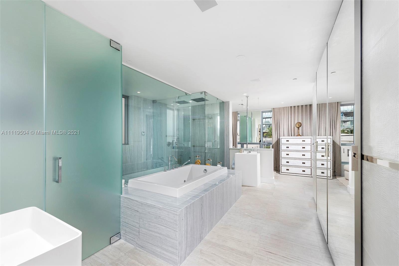 Welcome to Ocean House, South of Fifth's only luxury boutique building. Enter this three-bed, four-and-a-half bath oceanfront residence via private elevator lobby. Over 4000 sq ft of plush interiors, oversized great room with spectacular ocean views, chefs kitchen, luxurious primary suite and bathroom with dressing room, spacious guest bedroom, oversized media room with ensuite that can be converted back into bedroom, service quarters and expansive terraces. Designed by Antrobus + Ramirez, designer of the building, this residence was finished as the model unit with no expense spared, offered turn-key. Amenities include an elegant Lobby, Grand Salon, wine and cigar room, screening and billiard room, a state-of-the-art fitness center, poolside cabanas, beach service and a private hair salon.