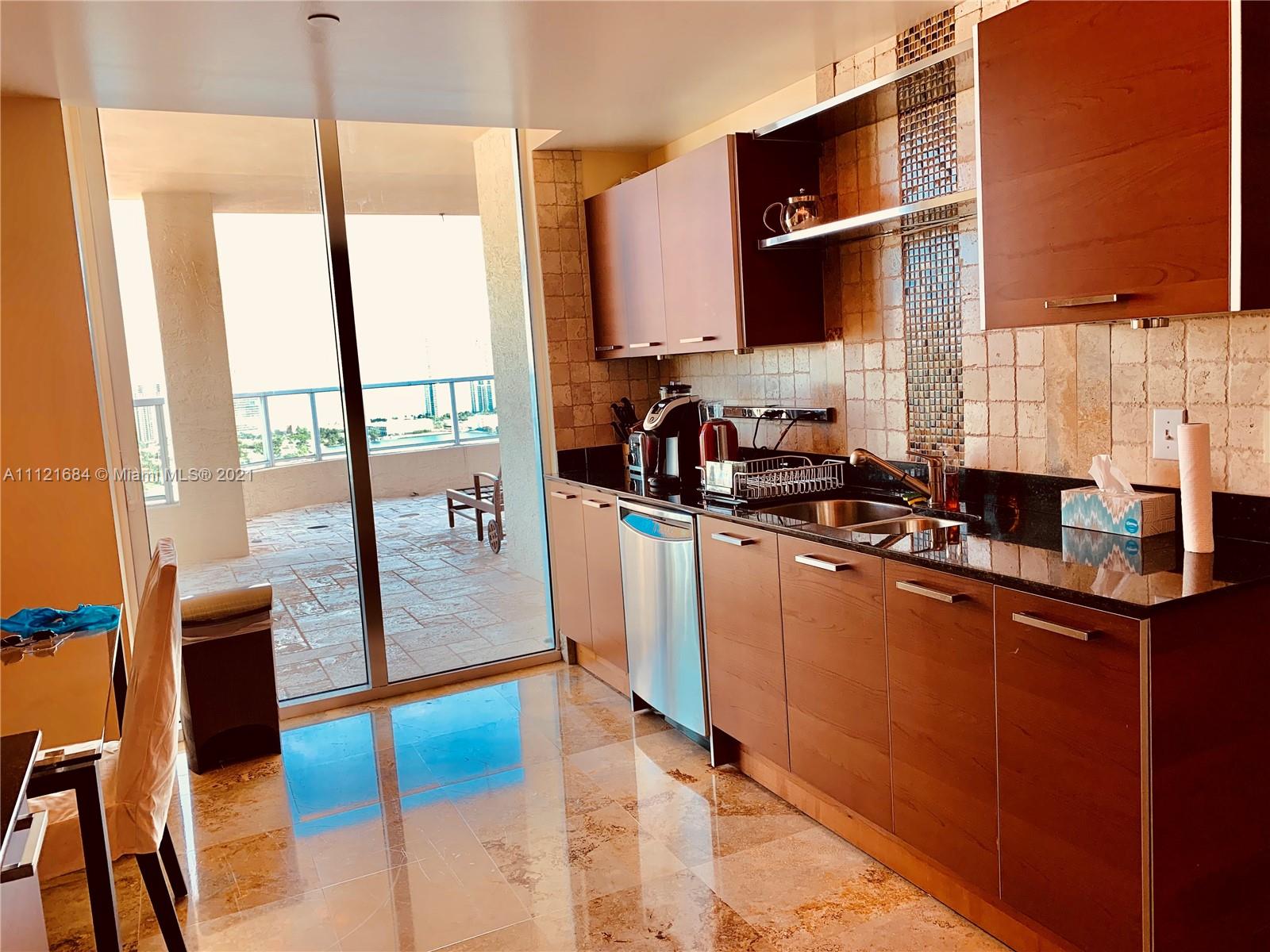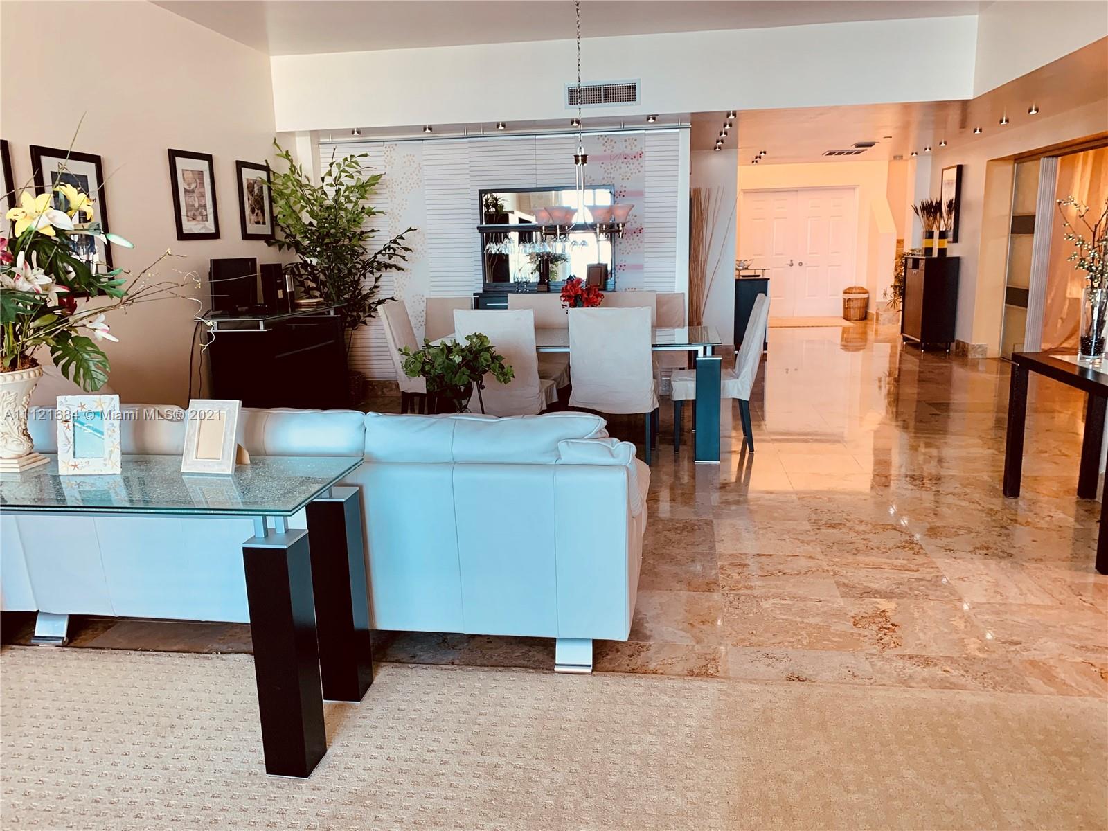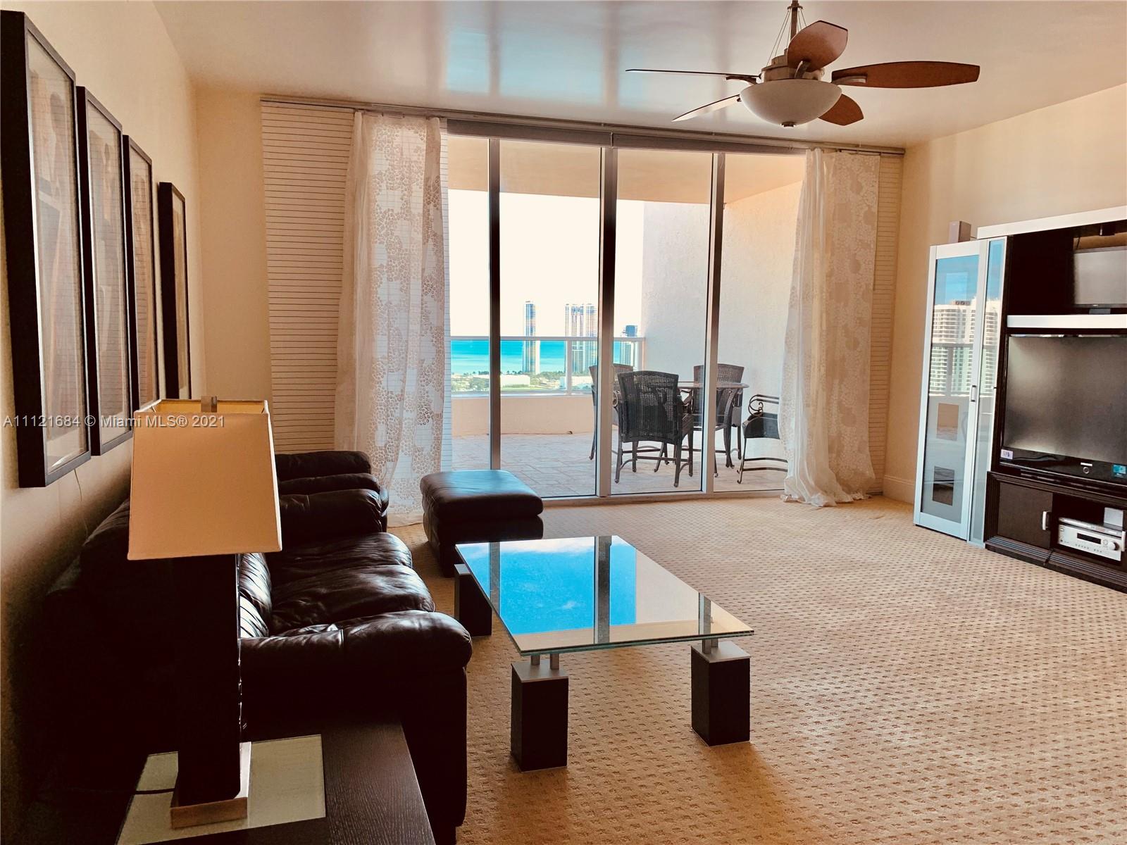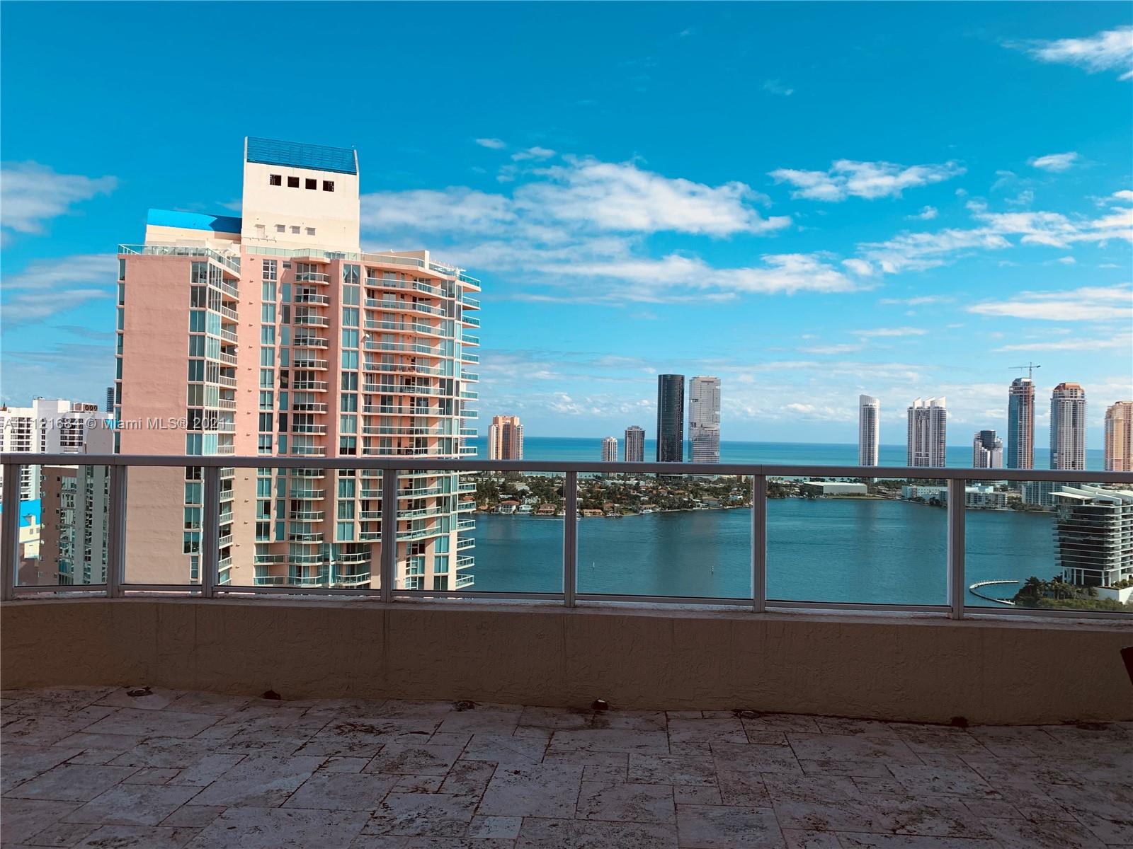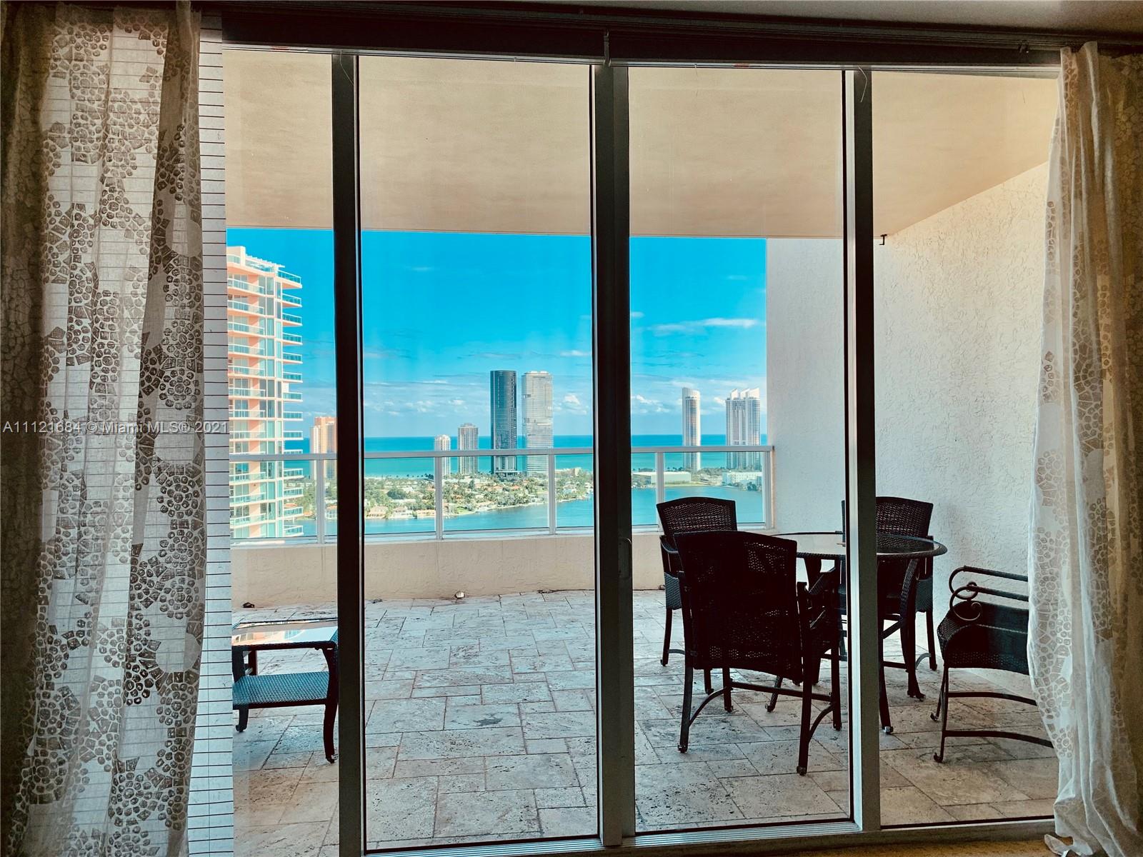 Turnkey UPPER PENTHOUSE located in the heart of AVENTURA! Breathtaking panoramic views of sunrise and sunset! Amazing night view, golf course, park, ocean and intracoastal from this two - story PENTHOUSE! This is large 3 BED + huge Den(home theater)/3.5 bath Upper Pent house. 3,001 sq ft is offered fully furnished, European kitchen, beautiful marble floors, high ceilings. The building offers 5 star SPA, health club with classes, 4 tennis courts, 2 pools, billiard room, private marina. 24 hours guard gate, doorman, walking distance to school, Founders Park, Aventura Mall. This penthouse include in the price 50 feet long marina space. 3 parking car garage space.
