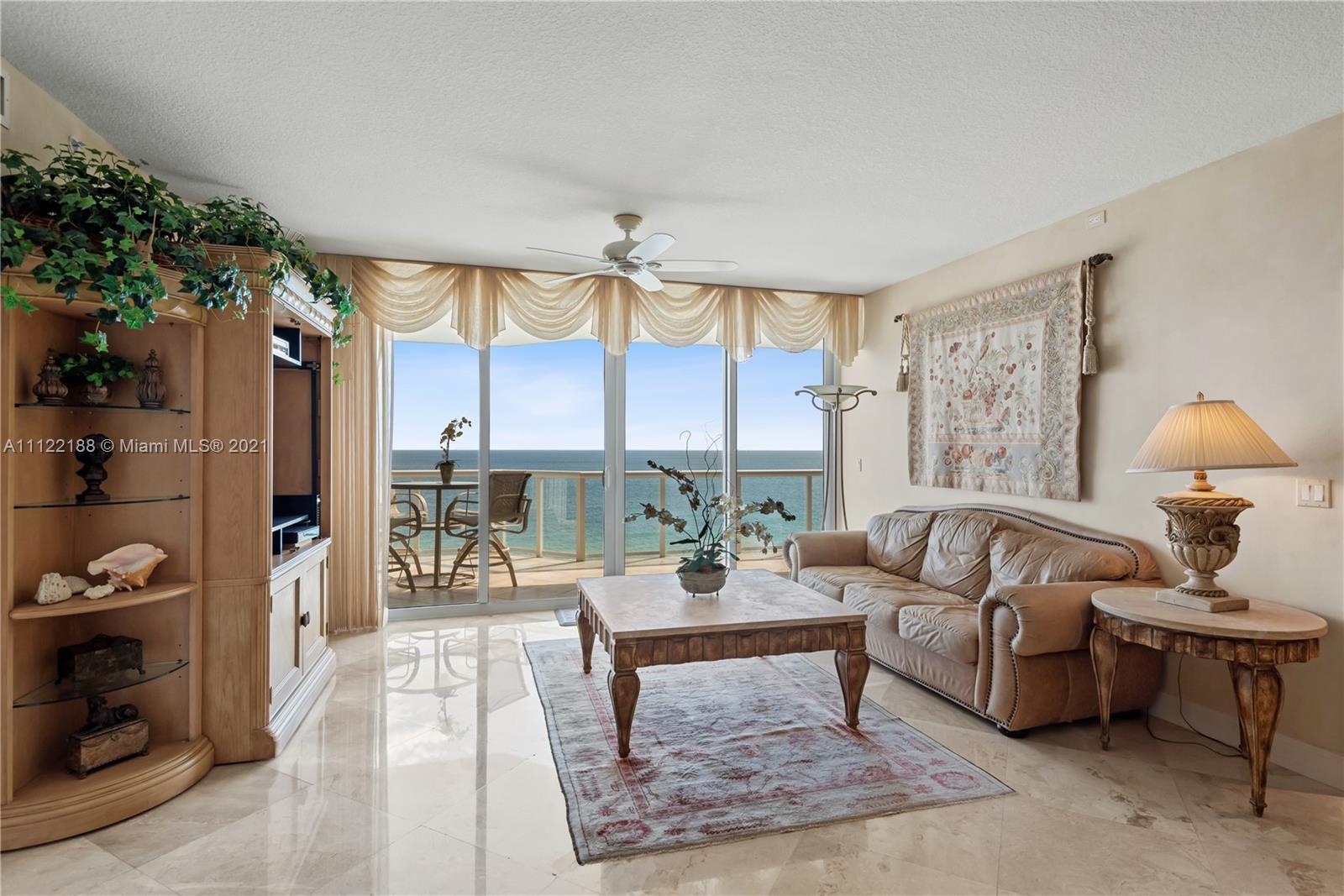 Stunning unobstructed Ocean view from every room of this spacious vacation or full time home in this popular luxury complex. A 301 sf private balcony spans the length of the Great Room & both bedrooms. Living areas have marble floors, bedrooms have carpet. Open kitchen. Good closet space, plus an air conditioned storage locker. Master bath has a jacuzzi tub and separate shower. There are two pools, outdoor hot tub, locker rooms with steam and sauna. Two tennis courts, Renaissance on Ocean is located in mostly residential Hollywood North Beach. Walk/ bike to neighborhood restaurants or fishing pier, follow Surf Road just 1 mile to the famed Hollywood Broadwalk. Location is convenient to shopping, entertainment venues and museums, racetrack, and casinos.
