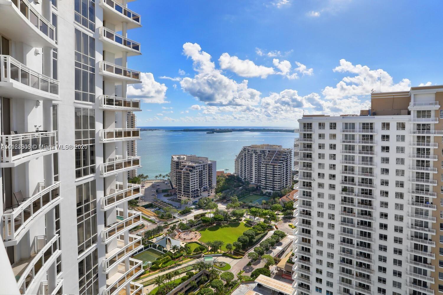 Breathtaking Biscayne Bay and City skyline views from this spacious 33rd floor 1b/1.5b apt. Over 1000 s.f of open floor plan and 10+ ft CEILINGS!. Kitchen features Italian cabinetry, granite countertops, Sub-Zero refrigerator & Miele induction range, dishwasher and wine cooler. Recessed lighting and Alexa controlled "smart" lighting in LR & bedroom. electric shades in bedroom. Marble floors throughout. Spacious walk-in closet. Samsung "app controlled" washer & dryer inside unit. Private storage unit on 3rd level. Amenities include: Pool and spa, gym, tennis & racquetball courts, kids play area, bicycle storage and 24 hr security. Walking distance to Brickell City Centre, vibrant Brickell Avenue & Downtown. Minutes away from MIA, South Beach, Coconut Grove & Coral Gables.