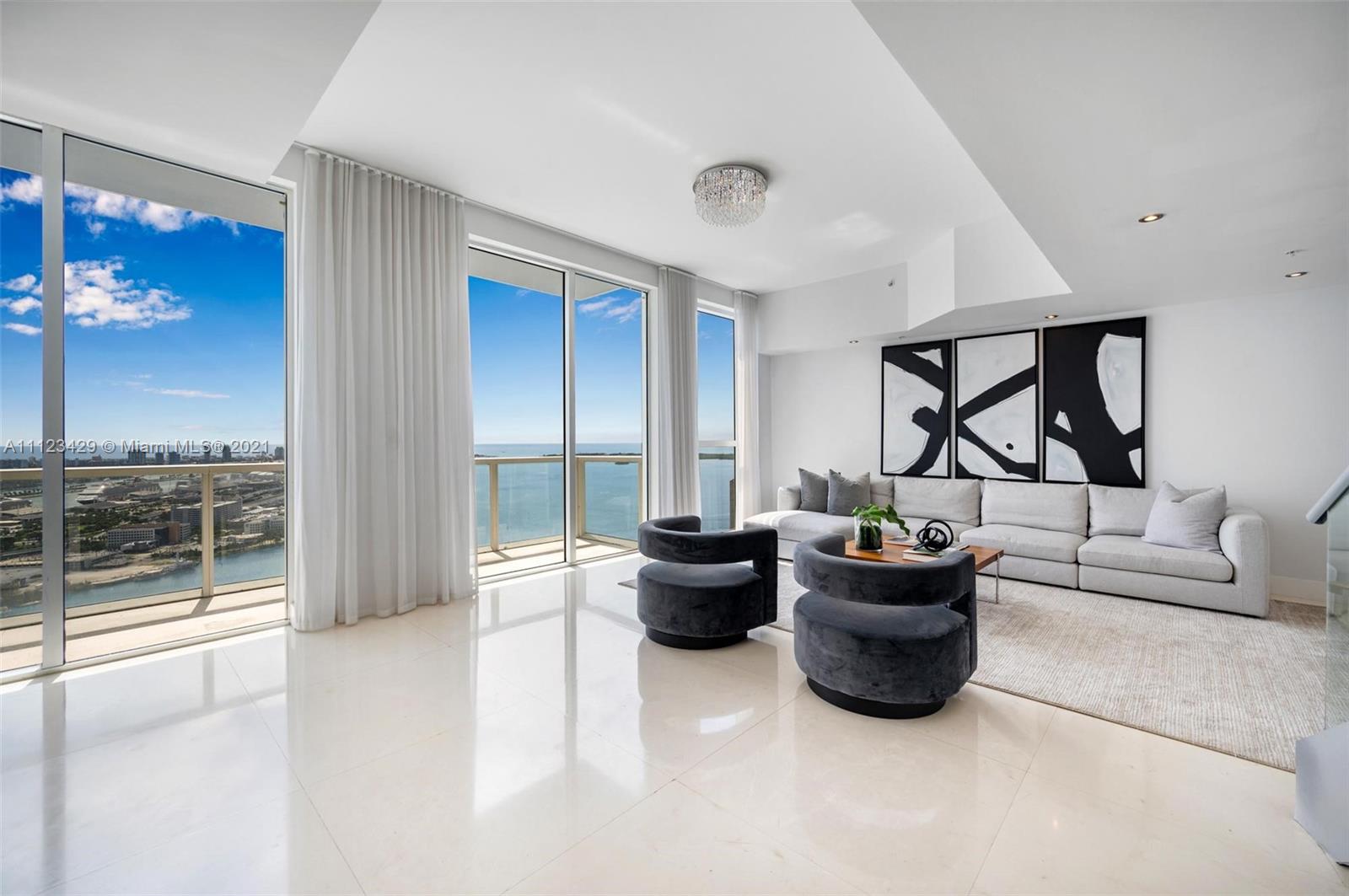 PH4907 at Vizcayne boasts 3,020 sq ft under AC over 3 levels of living, including a PRIVATE ROOFTOP overlooking the Bay & South Beach & 2 additional levels of terrace space. PH4907 is a turn-key, freshly furnished & painted masterpiece in the epicenter of everything Downtown Miami has to offer. On entry level, residents are greeted by a double-door entryway and 10 FT ceilings, accompanied by formal living area, large, open kitchen, formal dining room, laundry room, and a full bath + powder room. 2nd level is encompassed by the primary suite w/over-sized closet, 2nd suite with en-suite bath, a 3rd full bath + den. 3rd FL has private rooftop, full bath, and large open area. Vizcayne has 4 pools, fitness center, spa w/sauna & steam, running track, & doorman. 3 ASSIGNED PARKING + storage.