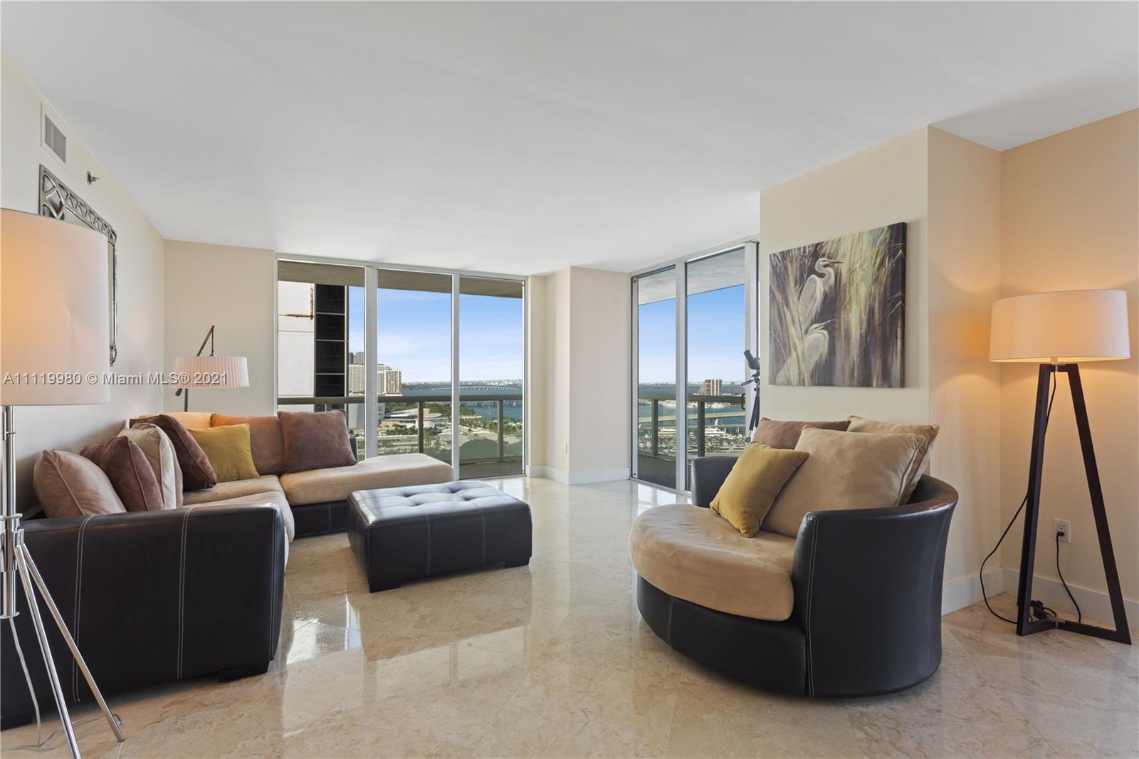 NESTLED IN THE HEART OF DOWNTOWN MIAMI'S BAYFRONT PARK, BISCAYNE BAY, THE SKYVIEWS MIAMI OBSERVATION WHEEL. SIEGER SUAREZ DESIGN, WHICH HAS BECOME A MUCH-RECOGNIZED FAÇADE TO THE EVER-DEVELOPING DOWNTOWN MIAMI. THIS TIMELESS CONDO TOWER PUTS YOU IN A RESIDENCE IN THE CENTER OF WHAT CONTINUES TO BECOME AN EVER-EVOLVING MIAMI WITH NEW PARKS, BUILDINGS, ENTERTAINMENT, SHOPPING COMING. 3 BEDROOM 2 BATHROOMS VERY WELL MAINTAINED AND A SECOND HOME FOR THIS ORIGINAL OWNER OFFERS A GREAT UNIT READY TO MOVE IN. THE WATER AND CITY VIEWS ARE JUST PERFECT ON A BRIGHT SUNNY DAY. WORKING FROM HOME OR JUST HAVING A RELAXING EVENING, THE VIEWS ARE AMAZING. THIS BUILDING HAS THE FEEL OF AN OASIS WITH ITS EXPANSIVE POOL DECK LEVEL WITH SPA AND FITNESS CENTER. ALL YOU NEED TO TRULY TAKE IN THE BEST OF MIAMI.