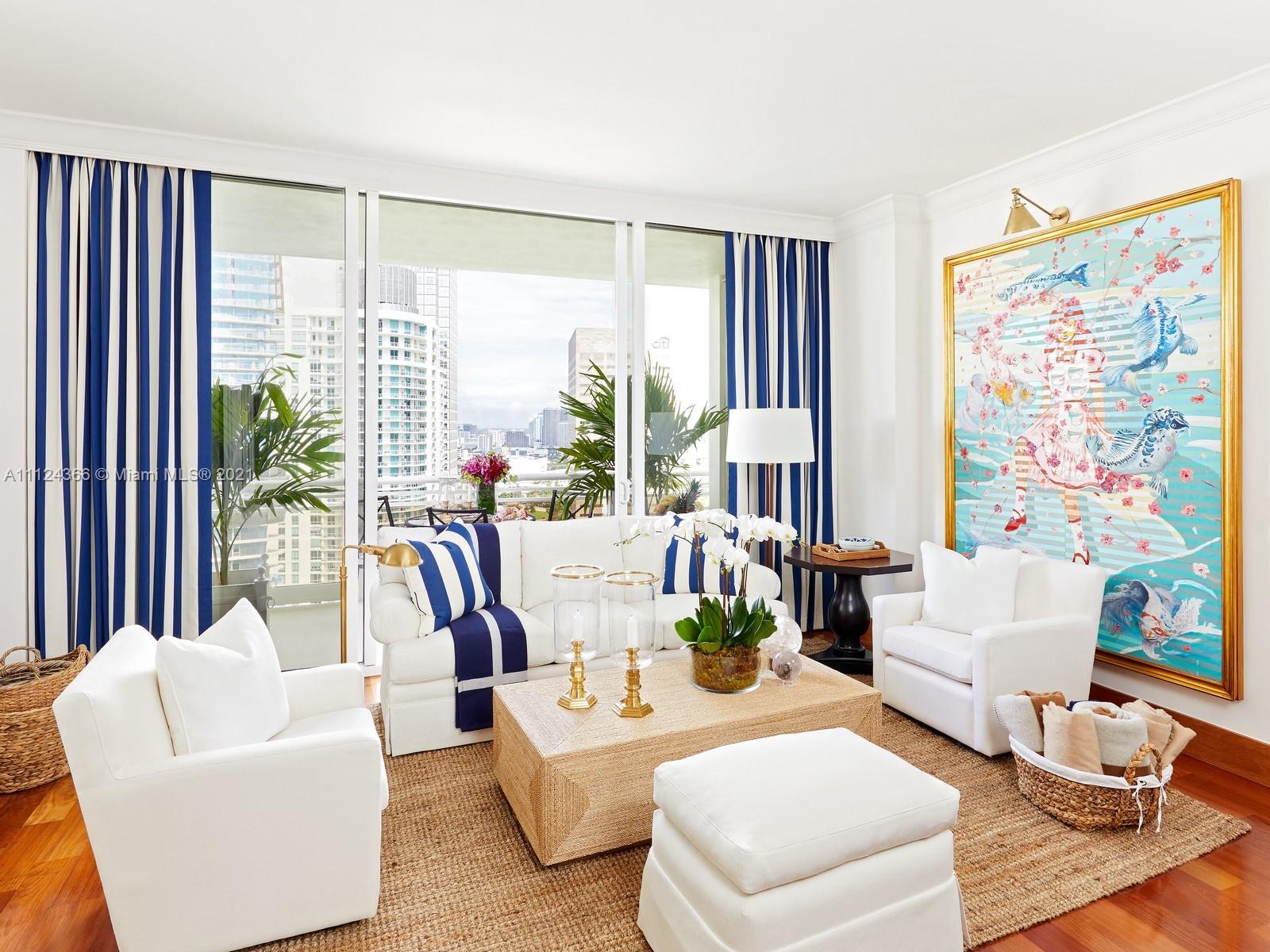 Amazing opportunity to buy a FULLY FURNISHED beautiful&bright updated, 2 bed 2.5 bath TURN KEY unit in Carbonell located in Brickell Key, live the City lifestyle in Miami while enjoying all the serenity of a gated island community.This renovated 1,505 SF unit features a beautiful balcony w/ stunning views to the canal&Miami Beach, designed w/ the utmost attention to detail by a luxury interior design firm,offering luxury furniture,Ralph Lauren decorations&one of a kind antiques,it features the ideal split floor-plan,wood floors throughout,high ceilings,luxury wallpaper&full size washer&dryer. Carbonell offers 5 star amenities including 2 tennis courts,2 story gym, basketball, racquetball, sauna, heated, swimming pool, concierge, free valet, recently renovated common areas.