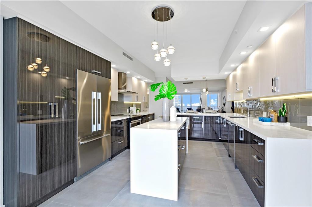 Private elevator entry to ocean views with high-end impact windows, This Exquisitely all NEW renovated condo at L'Hermitage , 2332 SF , 3 BR 3 Full Bath. New open kitchen with new cabinetry, quartz countertops, new appliances, lighting, new bathrooms with new vanities, master bath has large shower including rainfall and free standing tub. New Ceramic Tiles throughout. L'Hermitage is 10+ acre oceanfront fully gated complex w/ incredible amenities including lighted HAR-TRU tennis courts, fitness centers, spas, outdoor café, saunas, steam rooms, massage rooms, attended beach, great walkability, full valet, concierge services, and the ability to self park. Pet and family friendly community with incredible location.