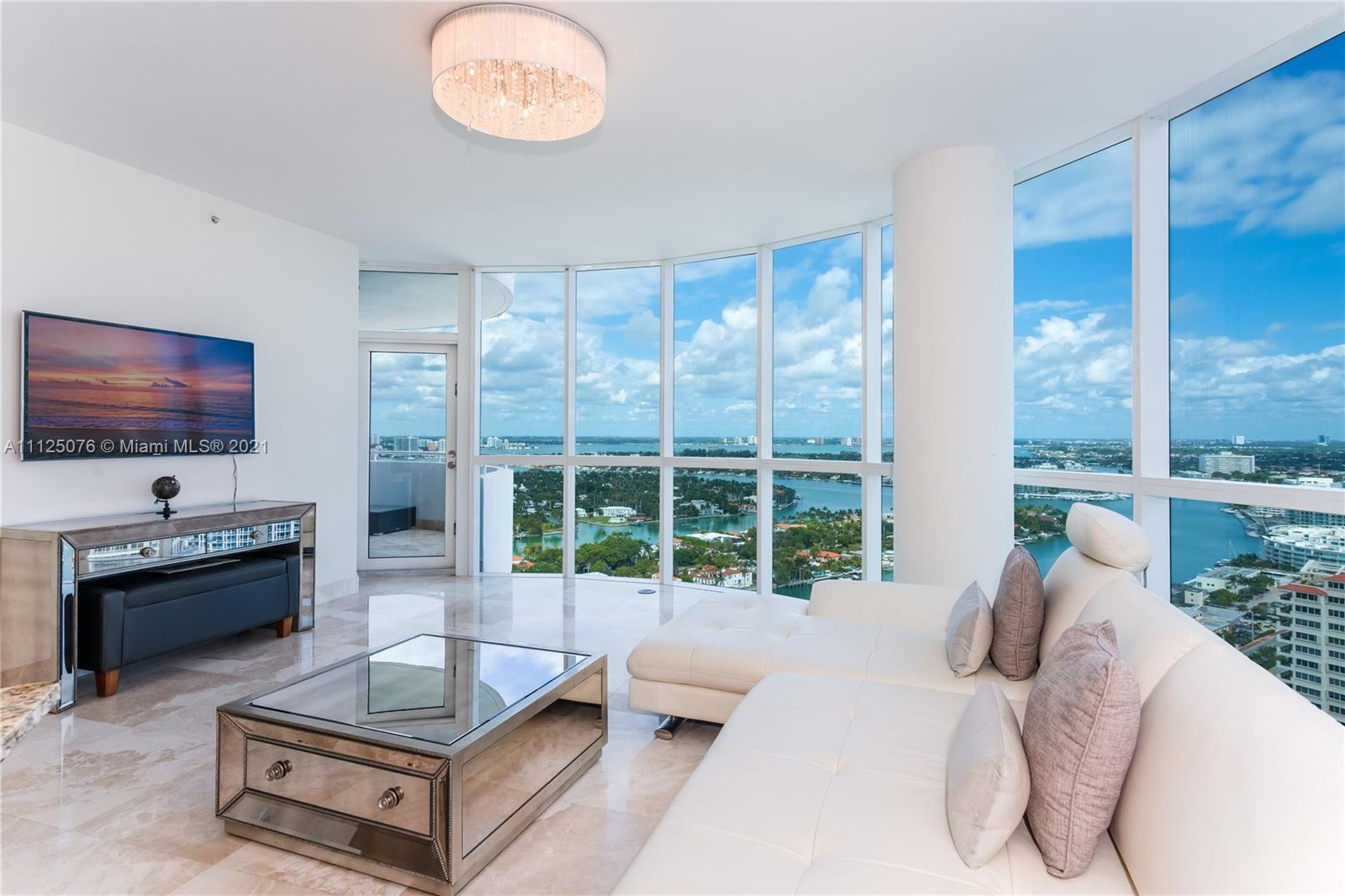 On the Beachside of Collins, put your feet in the Sand! Come home to Breathtaking WATERVIEWS of the Turquoise Ocean looking East & Intercoastal looking West from this PH Condo. This 2 Bed / 2 Bath, 1340 sqft condo boasts Extra High Ceilings, Remodeled Open Kitchen with Granite Countertops & Stainless Steel Appliances, Marble Floors throughout, Walk-In Closet. La Gorce Palace has great amenities including Gym, Pool, Playground, BBQ & Picnic Area, Surfboard Storage, Beach Service including Lounge Chairs & Umbrellas! The current Tenant is on Month to Month. Easy To Show!
