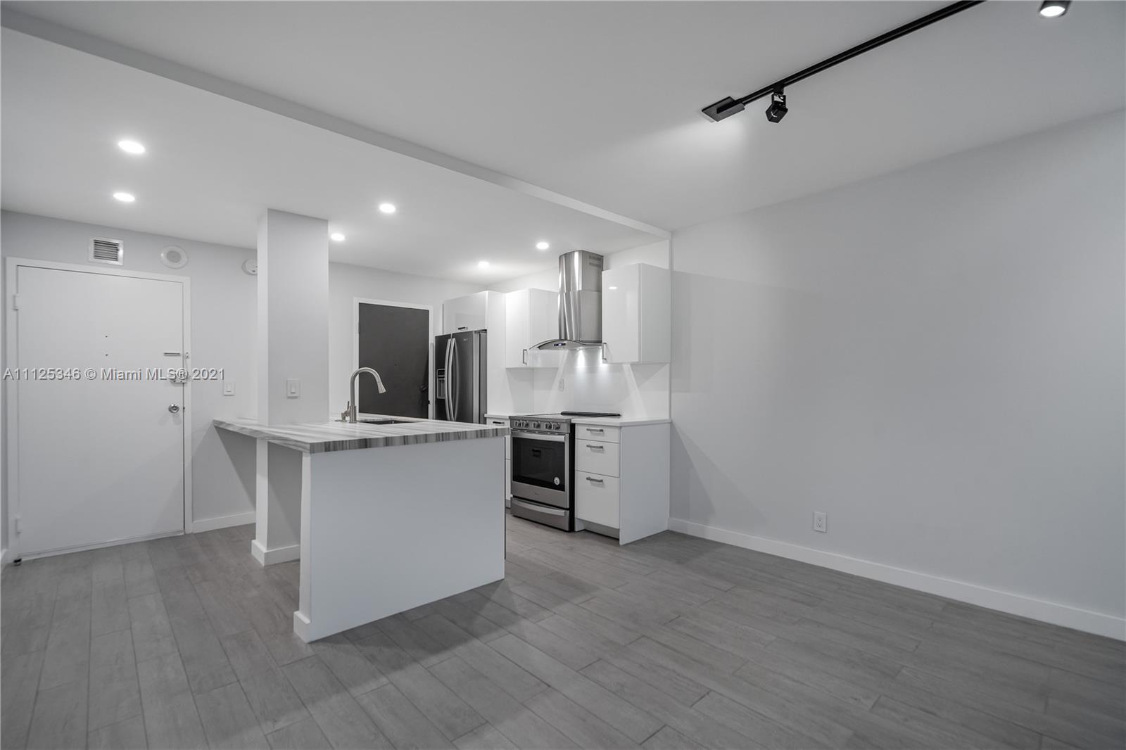 Absolutely gorgeous 2 bedrooms and one bathroom TURN KEY condo. Mount your tv on the wall with a beautiful porcelain backsplash. The kitchen boasts a marble and nano glass countertop, a hood with carbon filter, stainless steel appliances, modern white lacquered. The stunning marble bathroom has a mosaic display in the shower made of Blue Macauba tile. This historic building is just 5 minutes from the world-famous Fort Lauderdale Beach and in the center of restaurants, shops, and nightlife.