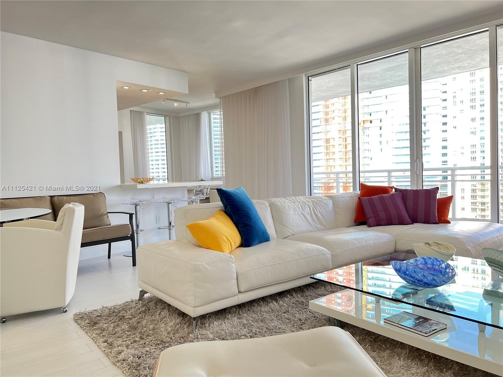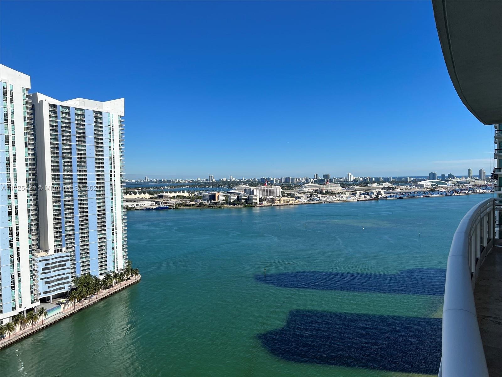 Great Views to bay, city and Port if Miami from every room in this 3/2.5 split floor plan furnished unit. wood throughout. Top of the-of-the line Miele appliances, wine cooler & granite countertops. Marble baths, jacuzzi tub & separate shower. Spectacular Zen-like lobby, state of the art gym, spa, infinity edge pool, racquetball, tennis, sauna, security and valet. All on a beautiful private island just minutes from Downtown Miami, Miami Beach, the airport and Coral Gables