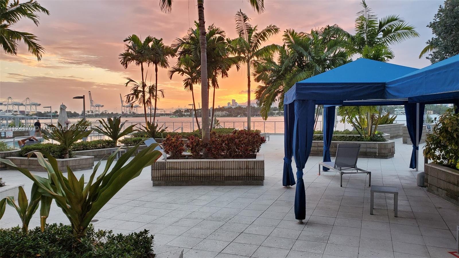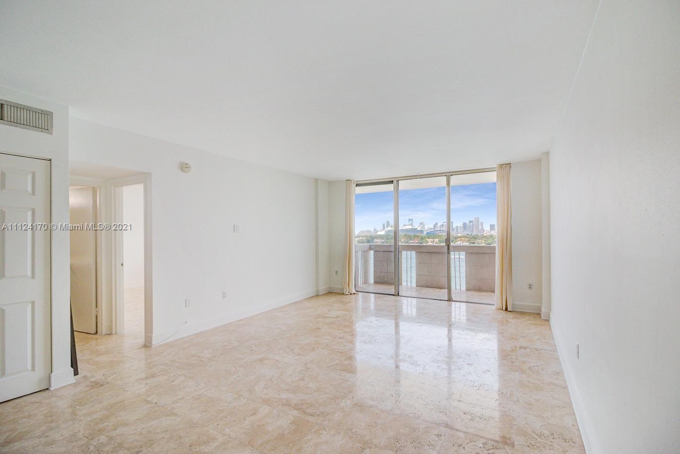 Rarely available at the South Bay Club-- direct bay view one bedroom condo with a balcony. This unit has stunning views day and night that overlook Biscayne Bay, Star Island, the downtown skyline, and the cruise ships. Neutral finishes throughout-- travertine flooring, updated kitchen and bathroom, and built-in closet cabinetry. Resort style living with a stunning open air lobby, a large Bayfront pool deck, fitness center and community room. Maintenance fee includes parking, cable and internet. Rentals and pets (small dog) are allowed. Prime location.