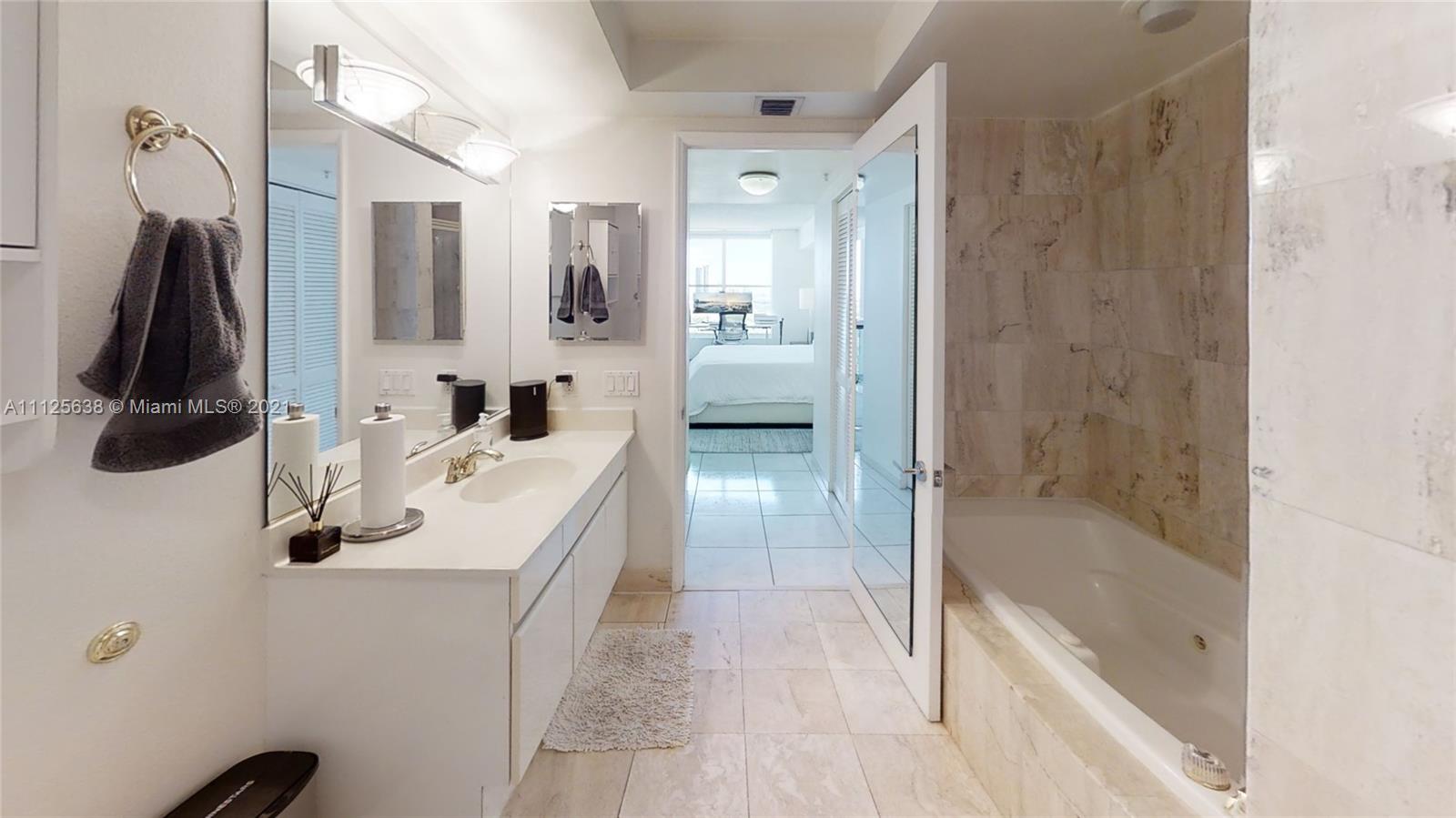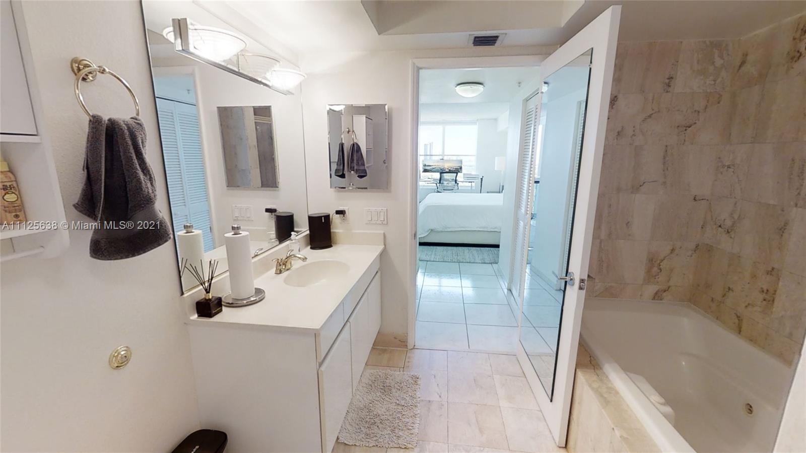 One bedroom + guest 1/2Bath in Sunset Harbour South Tower. Balcony Faces East. Tile flooring throughout. Separate Shower & Bathtub in master. Washer/Dryer closet. Bldg amenities: Bay walk, marina, fitness center, 2 pools, 1 assigned parking P1030 & valet parking.