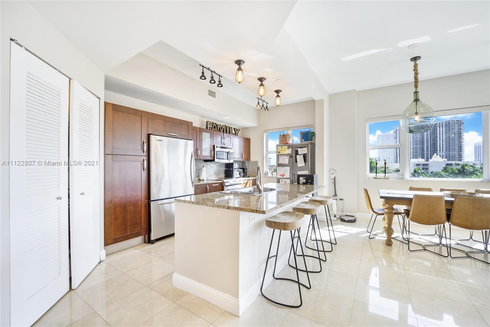 Cozy home feeling unit with high ceilings and very relaxing views from every room. professionally decorated. Marble floors throughout, open kitchen, 3 Bedrooms, 3 Baths, Master with large sitting area, custom made closets' interiors, and more. Turnberry Village is centrally located on East Country Club Drive within minutes to fine shopping, dinning and houses of worship. Amenities such as Pool, Jacuzzi with large terrace, BBQ areas, Teens Room, Fully equipped Gym, Sauna, Party Room and more. 2 Assigned parking spaces on same floor and Storage. Maintenance includes basic cable and internet. A must see.
