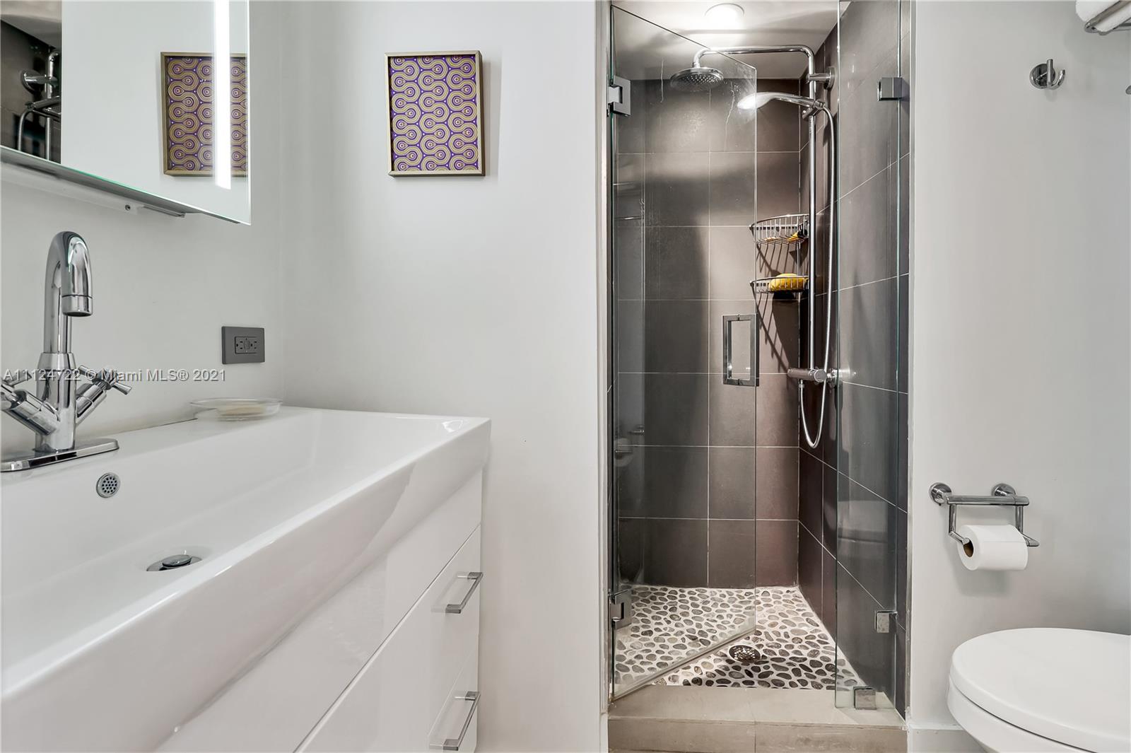 Walking distance to Sunset Harbour and Lincoln Rd, this rare high-floor corner unit comes with impact-resistant windows, elegant AC linear diffusers, year-old AC and water heater, faux Toto toilet in the master, in-unit washer and dryer, built-in custom closets. Water views from every window. No expense was spared during the remodeling of this 3/2 converted into a spacious 2/2. The 3rd bedroom opened to the living room serves as a TV room with linear recess light and a dry bar. From both balconies, enjoy the sunsets over Biscayne Bay and views of the Miami skyline. Double vehicle tandem parking space. 2 25lbs pets allowed. Amenities include a gym, a social room, a pool, a jacuzzi, bike storage. Financially sound building with low maintenance fee.