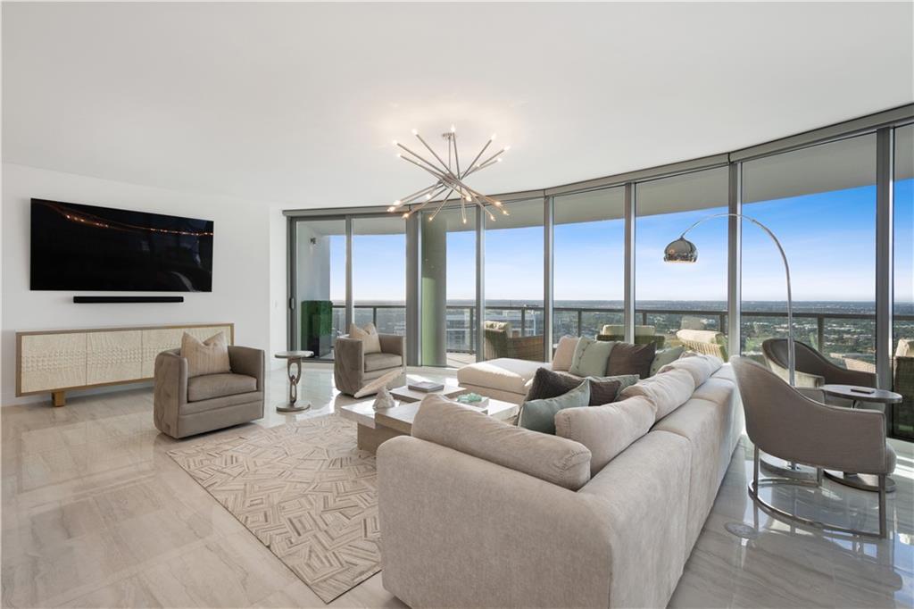 Incredible residence located on Las Olas Blvd, in Fort Lauderdale’s newest luxury Highrise, 100 Las Olas. This stunning 3 bedroom condo with a Den and 3 ½ baths has it all. Amazing views stretching from the River to the Ocean, soaring high above the city on the 40th floor with floor to ceiling windows throughout. Motorized black out shades in bedrooms, and motorized shades for living room and dining room windows. Beautiful gourmet kitchen with high end appliances & finishes. Wet bar with wine cooler and tile floors throughout. Walk in laundry with W/D and upgraded lighting and electronics. Unit is fully furnished and has 3 parking spaces. Building has separate amenities from the Hyatt, and 24 hour security.