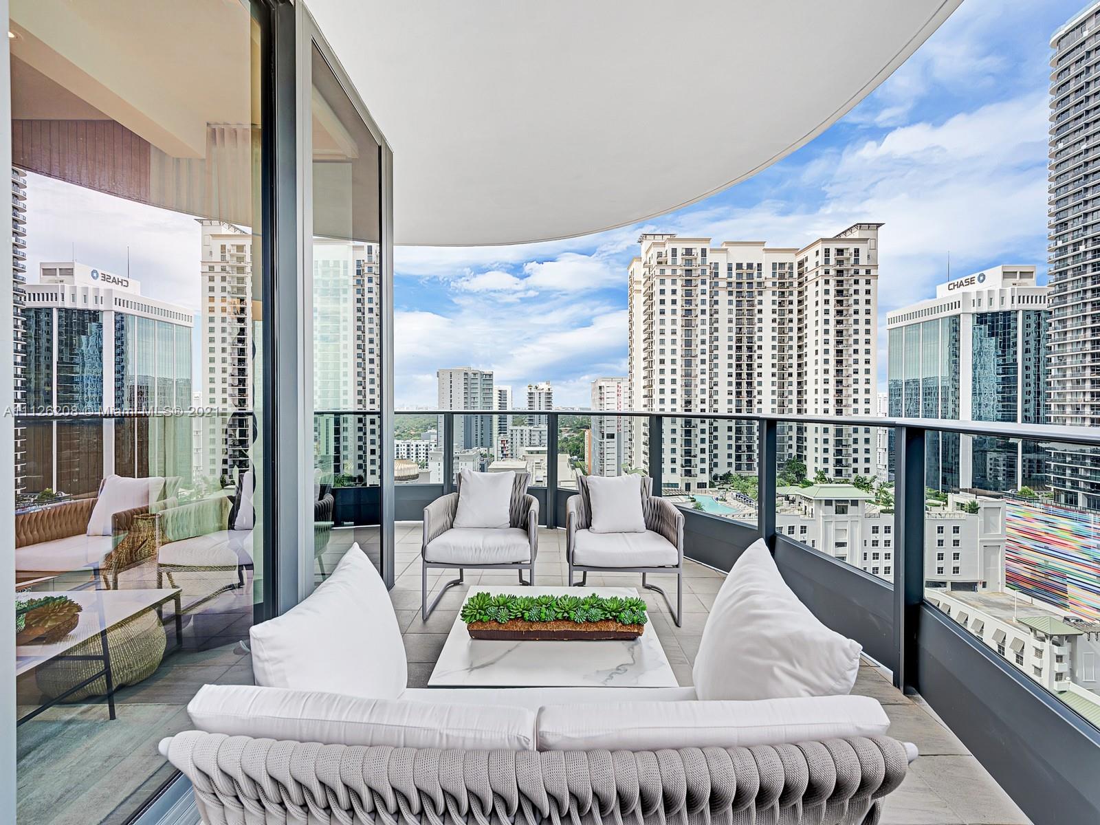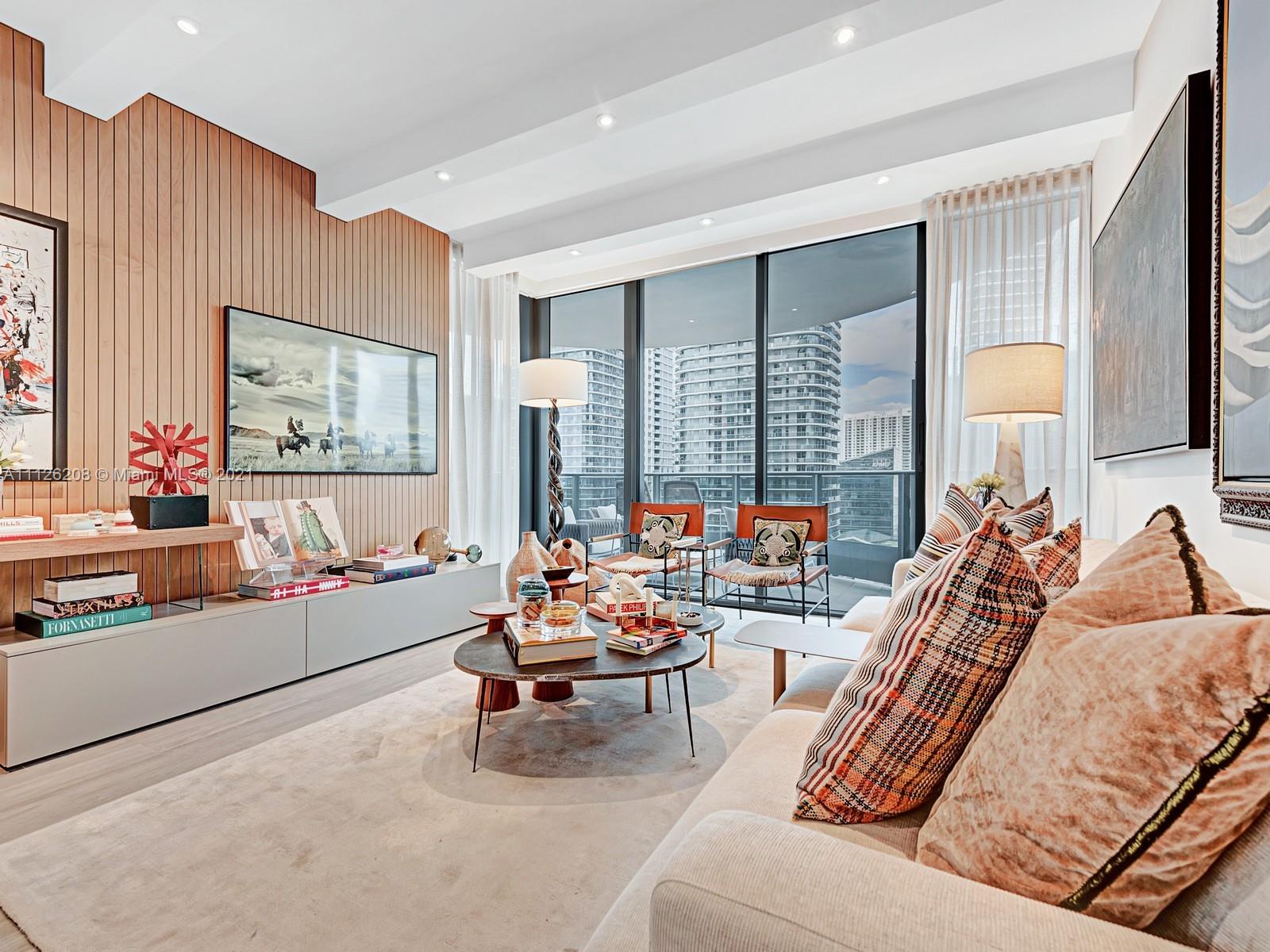 Spectacular brand new upgraded designer unit at the iconic Brickell Flatiron. This corner unit features, 3 BD|2.5 BA, built in closets, electric blackouts & shades, new Lutron lighting system, speakers throughout, top of the line Miele appliances, Nest system thermostat, Italian doors, 9-foot ceiling heights, wrap around balcony w/amazing views, premium flooring & much more! Live & play in this luxury building that offers some of the best amenities in the city: Sky club rooftop at the 64th floor offering sky Pool w/360-degree views of Miami & Biscayne Bay, fitness center w/the best views of the city, & Wellness Center & Spa. Flatiron Club at 18th & 17th floors offering a private movie theater, outdoor lap pool, children's playroom, social lounge room, billiards room, & concierge service.