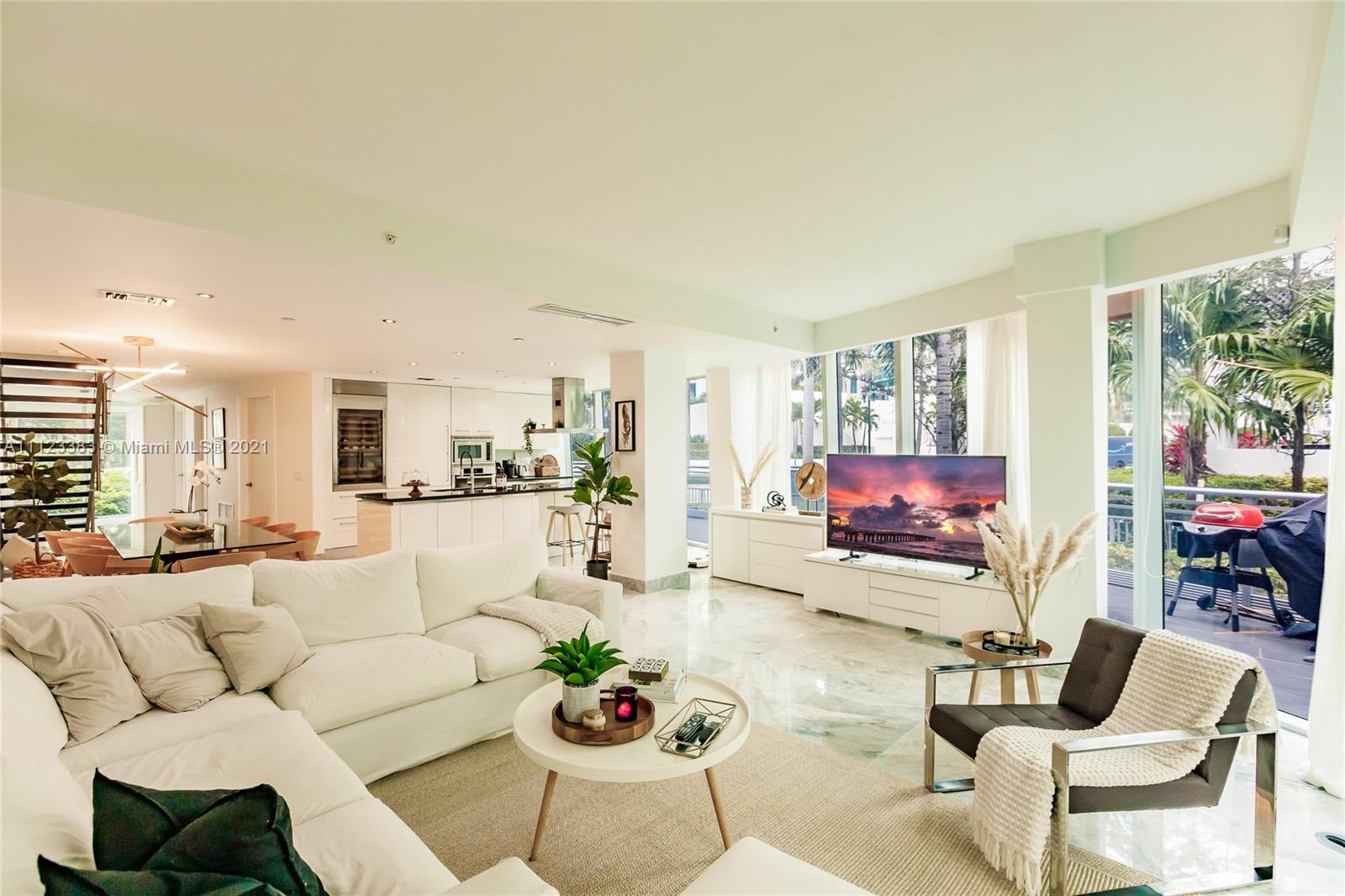 Beautiful modern waterfront building, GROUND FLOOR unit. This is the largest 4 BED/ 4.5 Baths. Huge Private Lanai , 2 Assigned parking spaces. Extra Storage space. Unit is similar to a townhouse, but with 5* Start building amenities, updated fitness center, yoga, 2 swimming pools, tennis, racquet ball court, movie theater, marina, 24hs concierge and valet service. Two deeded parking (accommodate four cars) Sub-zero refrigerator and Italian kitchen cabinet. Marble Floors. Walking distance to shopping, schools and restaurants and Minutes from the beach and I95. One of the most desirable location in Aventura. In Living conditions. Bring your toothbrush !!