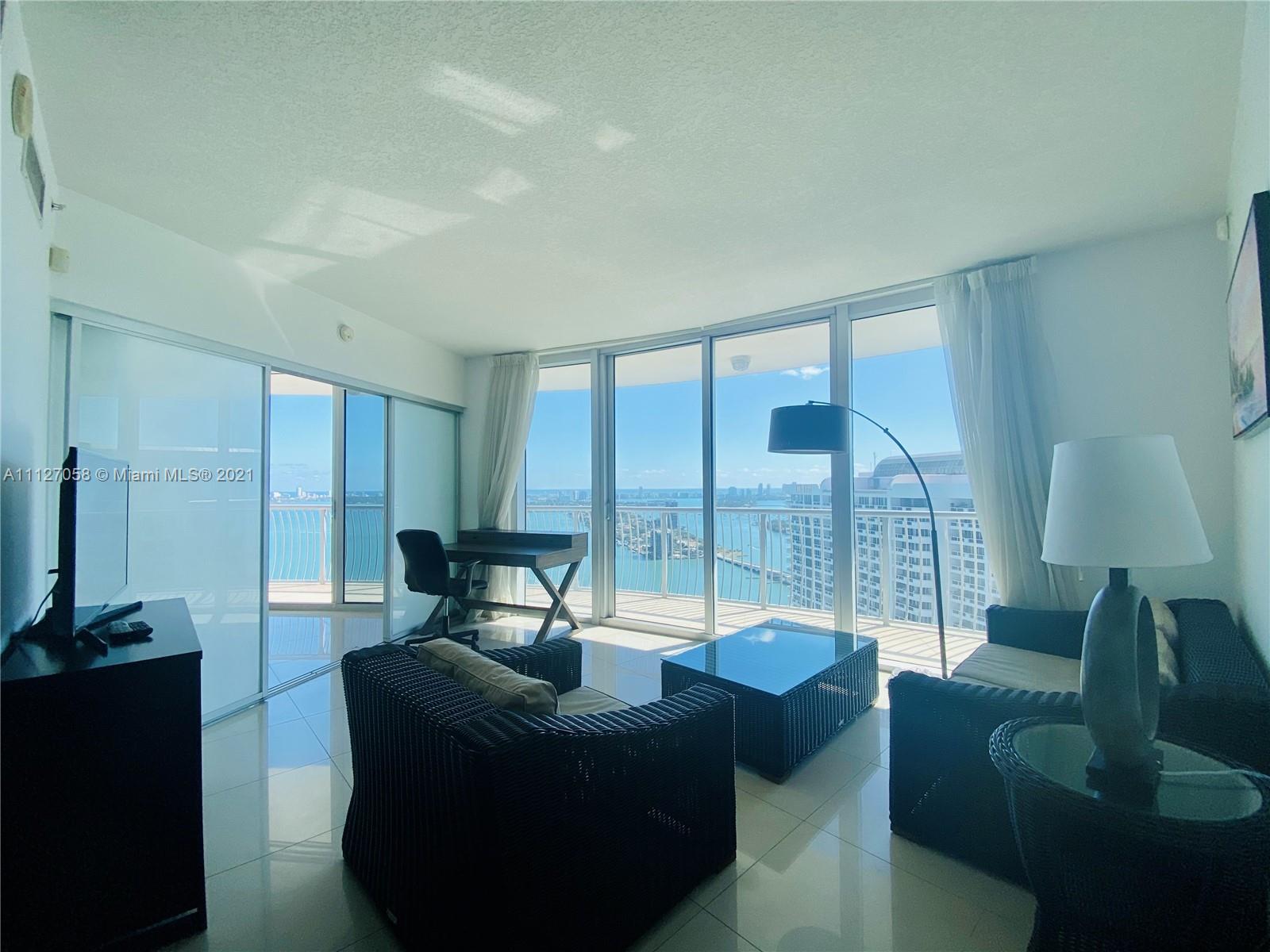 Best line in Opera Tower. Direct Ocean View & overlooking Miami Beach. 2 bedroom 2 bathroom with unobstructed water view of Biscayne Bay and the Ocean. Opera Tower is located in Miami's most vibrant location, close to Wynwood, Midtown, Design District and Downtown. Close to Adrienne Art Center, FTX Arena, The Perez Art Museum of Science. Fully furnished. Open Kitchen, stainless steel appliances. Unit is vacant and ready to move in!! See brokers remarks.