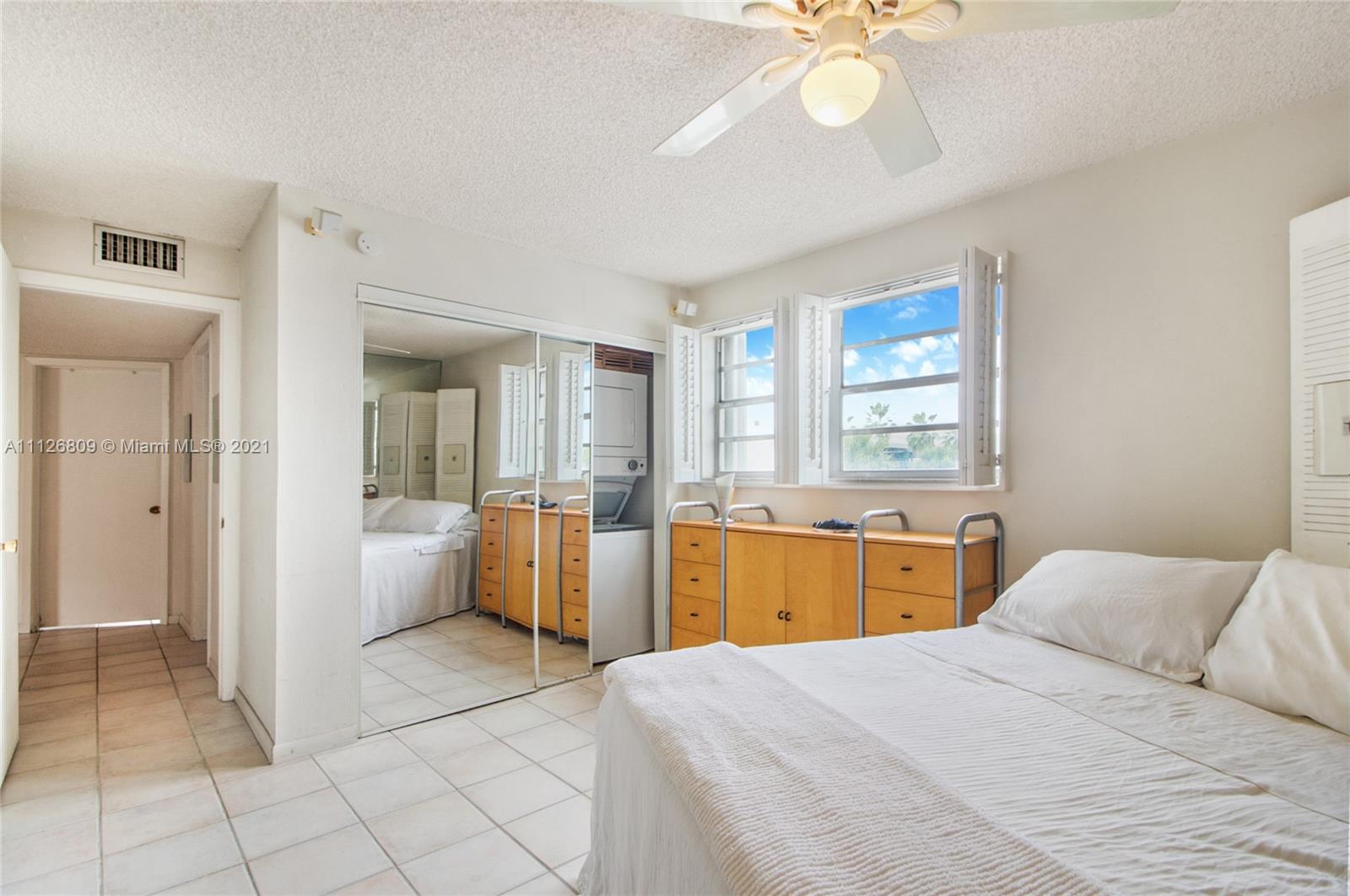 Spacious 2-bedroom 2-bathroom corner condo with 3 walls of windows allowing lots of light! Just steps to Lincoln Rd! Pet friendly building allows 2 dogs or cats. Gated garage parking. Lots of closest space with 3 walk-ins closest. washer and dryer inside unit. plantation and hurricane shutters. Brand new AC. This condo is ready for your renovations! Make it your own. Or renovate for a great rental investment. This condo has lots of potential! Original 1977 kitchen. Sellers require cash only. Looking for quick closing. AS IS with no financing contingencies. Similar renovated on 5th floor appraised at $425,000. Need prior days' notice for showings.