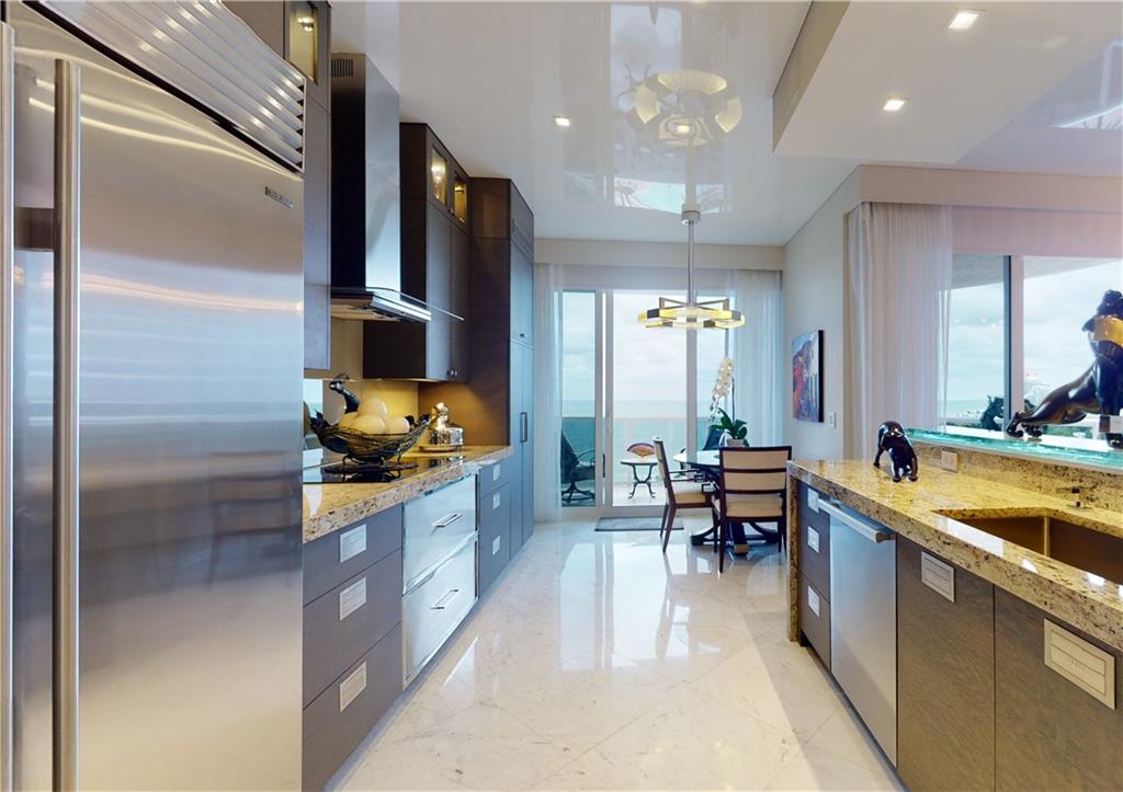 Decorator model..SE EXPOSURE..DOUBLE CORNER..2 terraces..3 FULL BEDROOMS ...PRIVATE ELEVATOR..HURRICANE IMPACT WINDOWS.. 10 FT CEILINGS..Designer furnishings are included w/o art & accessories 2 garage parking spaces for self parking. 2 Har-Tru, clay tennis courts. Concierge, guest valet parking, poolside cafe, private beach pavilion, dog run, beach attendant, cabanas, tikis, bbq area, 10 acres of resort-like oceanfront...convenient to restaurants and shops. 2 pets any size, ok