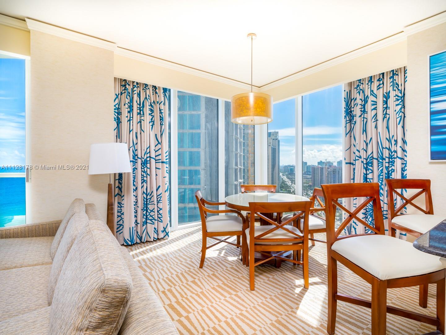 WELCOME TO PARADISE EXCLUSIVELY LOCATED AT THE LUXURIOUS TRUMP INTERNATIONAL BEACH RESORT. THIS ONE BEDROOM UNIT HAS BREATHTAKING VIEWS OF THE INTRACOASTAL AND OCEAN THAT YOU CAN ENJOY FROM FLOOR TO CELING WINDOWS AND YOUR BALCONY. UNIT COMES FULLY FURNISHED WITH COMPLETE KITCHEN & APPLIANCES. ALSO, THIS UNIT HAS A LOCKABLE OWNER CLOSED AND WASHER DRYER. CURRENTLY IN HOTEL MANAGEMENT PROGRAM WHICH HANDLES ALL RENTALS, BOOKING AND UP-KEEPING MAKING IT EASY TO OWN. AMENITIES INCLUDE GYM, SPA, 3 RESTAURANTS, LOBBY & POOL BAR, POOL/BEACH SIDE FOOD SERVICE, 2 POOLS, CABANAS, PADDLE BOARD/JET SKI RENTALS, TENNIS, BASKETBALL, CHILD CARE, SECURITY, VALET, WALK TO RESTAURANTS/SHOPPING AND HOUSE OF WORSHIP.